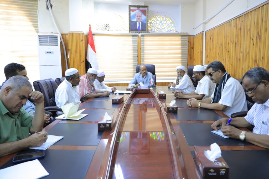 في لقائه مع قيادة مكتب الشباب والرياضة والاتحادات الرياضية بوادي وصحراء حضرموت