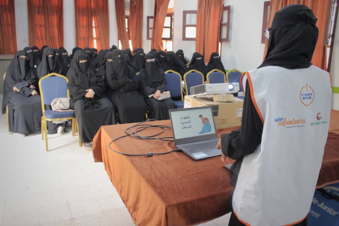 كما تعرفت المشاركات على أساسيات الإنعاش القلبي الرئوي ، وأجريت تطبيقات عملية للإنعاش باستخدام دمى المحاكاة الطبية، وطرق التعامل السليم مع الحالات المفاجئة.