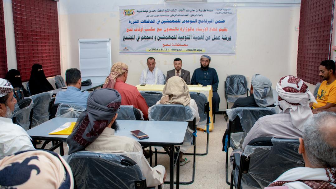 نظمت وزارة الأوقاف والإرشاد، اليوم، بمحافظة لحج، البرنامج التوعوي للمهمشين ودمجهم في المجتمع في المحافظات المحررة.