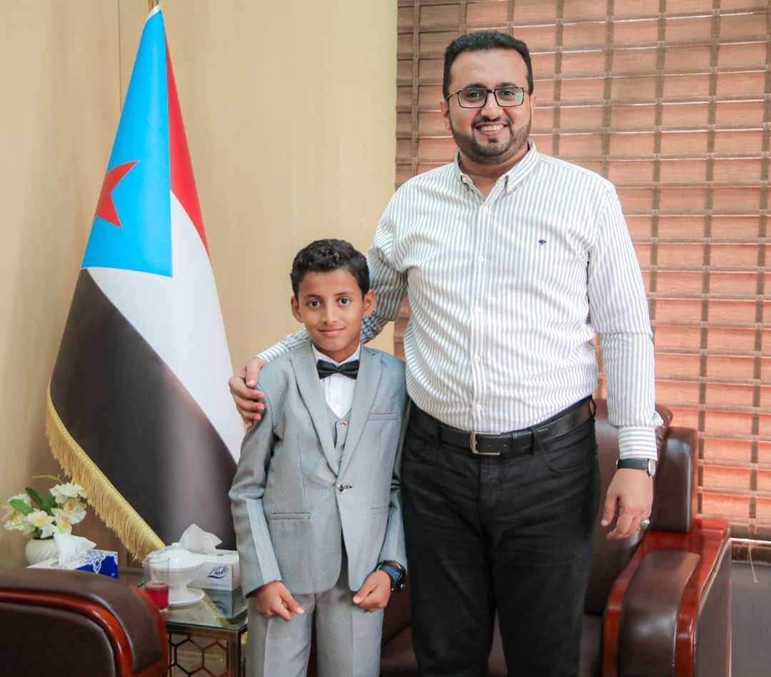 التقى سالم ثابت العولقي رئيس الهيئة الوطنية للإعلام المتحدث الرسمي باسم المجلس الانتقالي الجنوبي اليوم بمكتبه في مقر الهيئة بالعاصمة عدن الطفل العبقري يسلم بمعية والده وليد السعيدي.