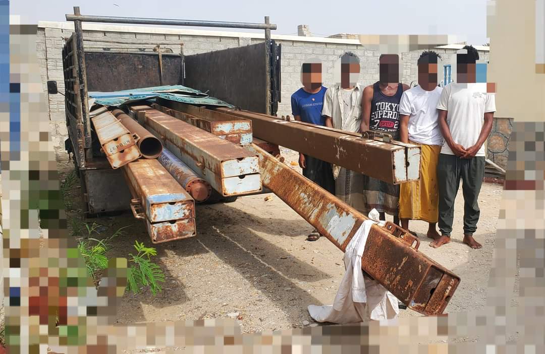تمكنت الأجهزة الأمنية بمديرية غيل باوزير، من القبض على عصابة مكونة من خمسة أفراد وهم (خ.م) البالغ من العمر 45 عاماً، (أ. ش) البالغ من العمر 38عام، (س.ي)البالغ من 25 عام، (م.أ) البالغ من العمر 21 عام، (ح. د) البالغ من العمر 19 عام، متهمين بسرقة معدات نفطية قديمة من موقع شركة شلمبرجير بالقرب من ميناء الضبة النفطي، تقدر قيمتها بحوالي 200 ألف دولار.