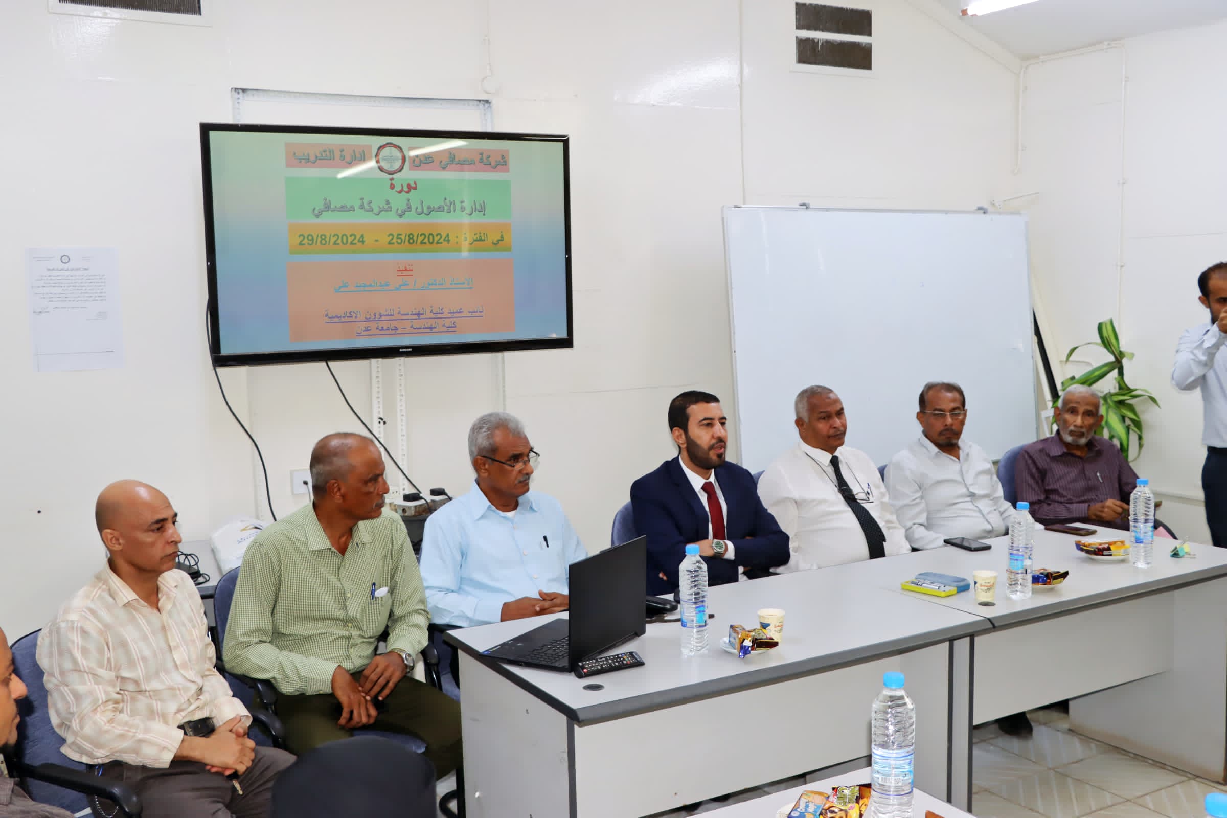 بدأت بشركة مصافي عدن، اليوم الأحد، دورة تدريبية عن إدارة الأصول، بمشاركة 22 موظفا من مدراء الإدارات والمختصين في الإدارات المالية والفنية والمحاسبية بالشركة .
