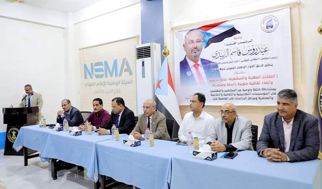 عقد فريق الحوار الوطني الجنوبي في للمجلس الانتقالي الجنوبي، اليوم الاثنين، ندوة ثقافية بعنوان “اللغتان المهرية والسقطرية، جذور تاريخية وأبعاد ثقافية جنوبية راسخة ومتجددة”، برعاية الرئيس القائد عيدروس الزبيدي رئيس المجلس الانتقالي الجنوبي.