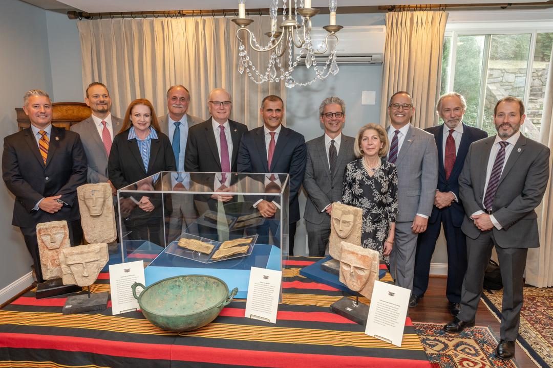 وثمن سفير اليمن في واشنطن السفير محمد الحضرمي، في حفل التسليم بحضور مسؤولين من وزارة الخارجية الأمريكية ووزارة الأمن الوطني ووزارة العدل ووكالات الأجهزة الأمنية المختصة، جهود الأجهزة الأمنية الأمريكية التي قامت بضبط هذه الأثار اليمنية القديمة واعادتها لحكومة بلادنا.