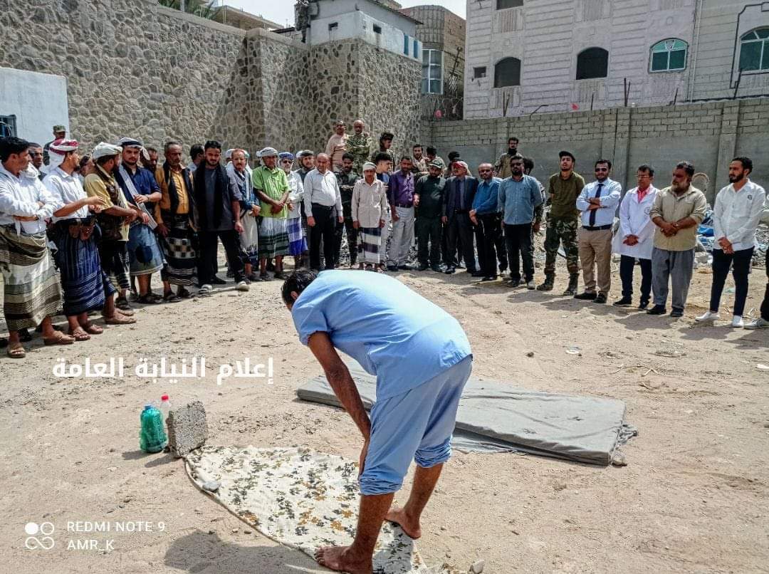 من جانبه فقد أشرف على تنفيذ حكم الاعدام رئيس نيابة إستئناف شمال عدن القاضي يحيى ناصر الشعيبي لتنفيذ الحكم الصادر من محكمة عدن في ٢٠٢١/١١/١٢م والمقر من قبل الدائرة الجزائية، ومن المحكمة العلياء في القضية رقم ٢٠١٧/١٥م ج.ج ، وبناء على توجيهات معالي النائب العام رقم ٣٥٦ص.ع تاريخ ٢٠٢٤/٣/٥م والصادر من مجلس القيادة الرئاسي بتاريخ ٢٠٢٤/٢/١٣م.