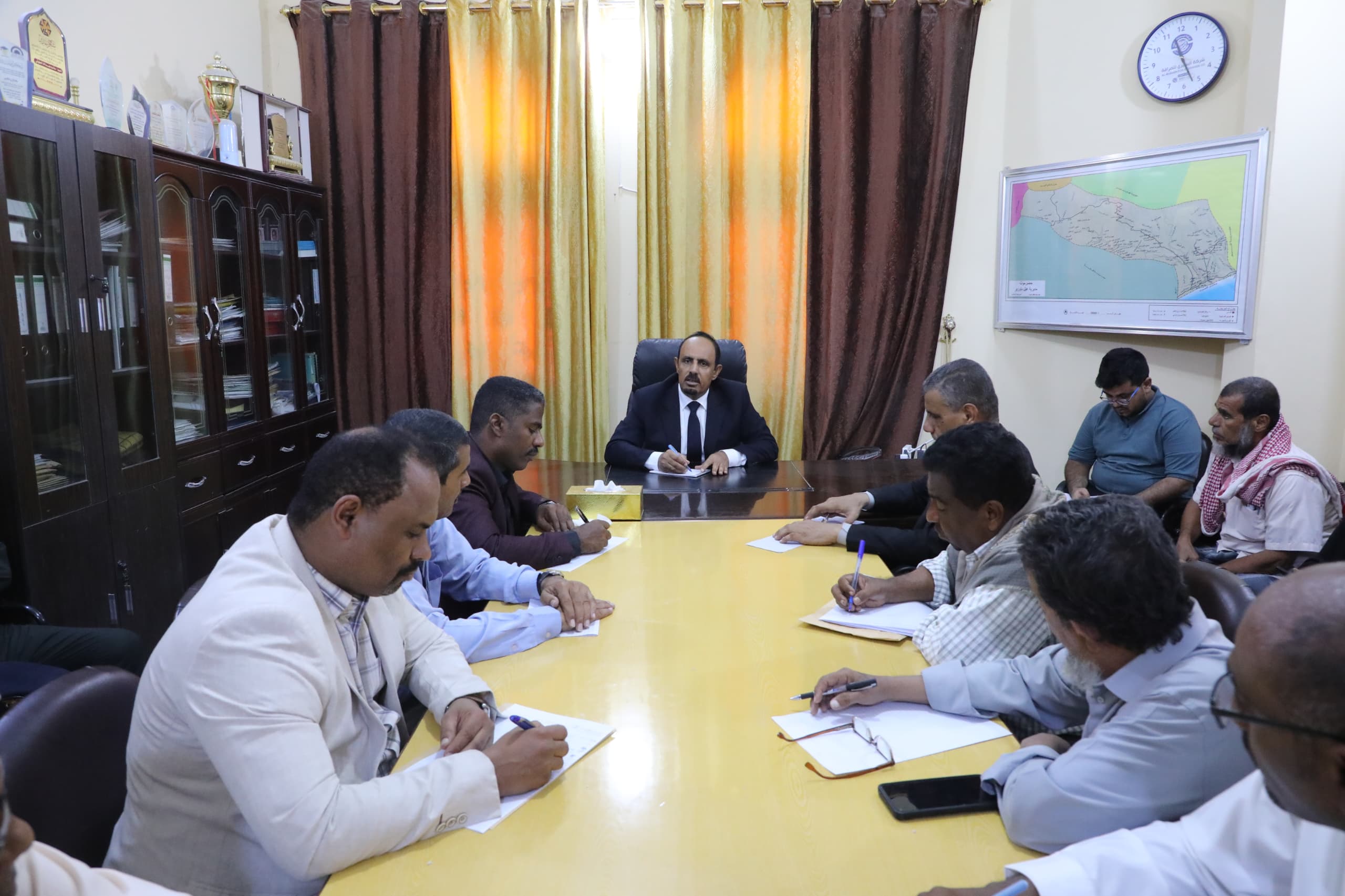 رأس محافظ حضرموت الأستاذ مبخوت مبارك بن ماضي، اليوم بمديرية غيل باوزير اجتماعًا للمكتب التنفيذي بالمديرية.
