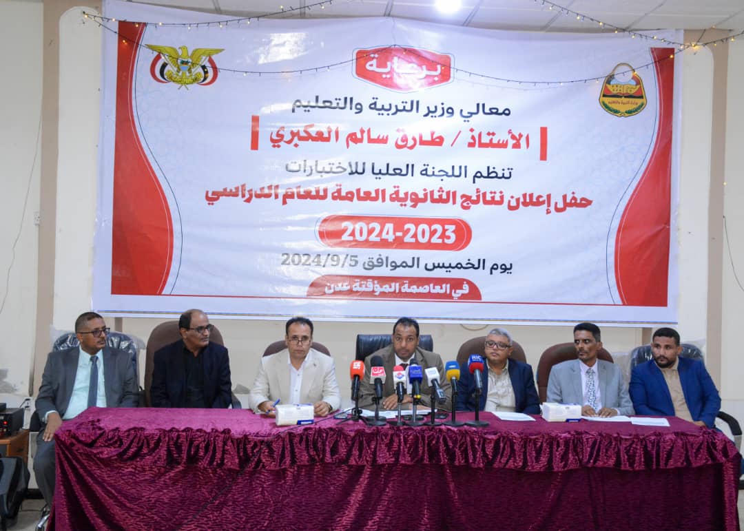 وهنأ وزير التربية والتعليم طارق العكبري خلال حفل الإعلان الذي نظمته اللجنة العليا للاختبارات، جميع الطلاب والطالبات الذين حققوا نتائج عالية على مستوى المحافظات المحررة..متنمياً لهم بالتوفيق والنجاح في مشوار تحصليهم التعليمي المقبل.