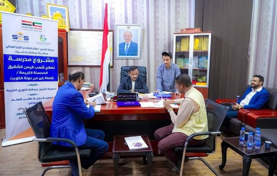 وخلال التوقيع على العقد” أكد المحافظ عوض ابن الوزير” على أهمية هذا المشروع في تعزيز البنية التحتية للعملية التعليمية في مديرية جردان، مثمنًا” الدعم الذي تقدمه الأشقاء في دولة الكويت الشقيقة.