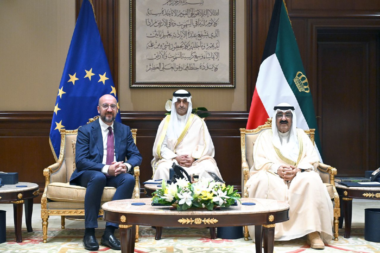 بحث امير الكويت، صاحب السمو الشيخ مشعل الأحمد الجابر الصباح، اليوم، مع رئيس المجلس الأوروبي شارل ميشيل والوفد المرافق له الذي يزور الكويت حاليا، القضايا ذات الاهتمام المشترك وآخر المستجدات على الساحتين الاقليمية والدولية.