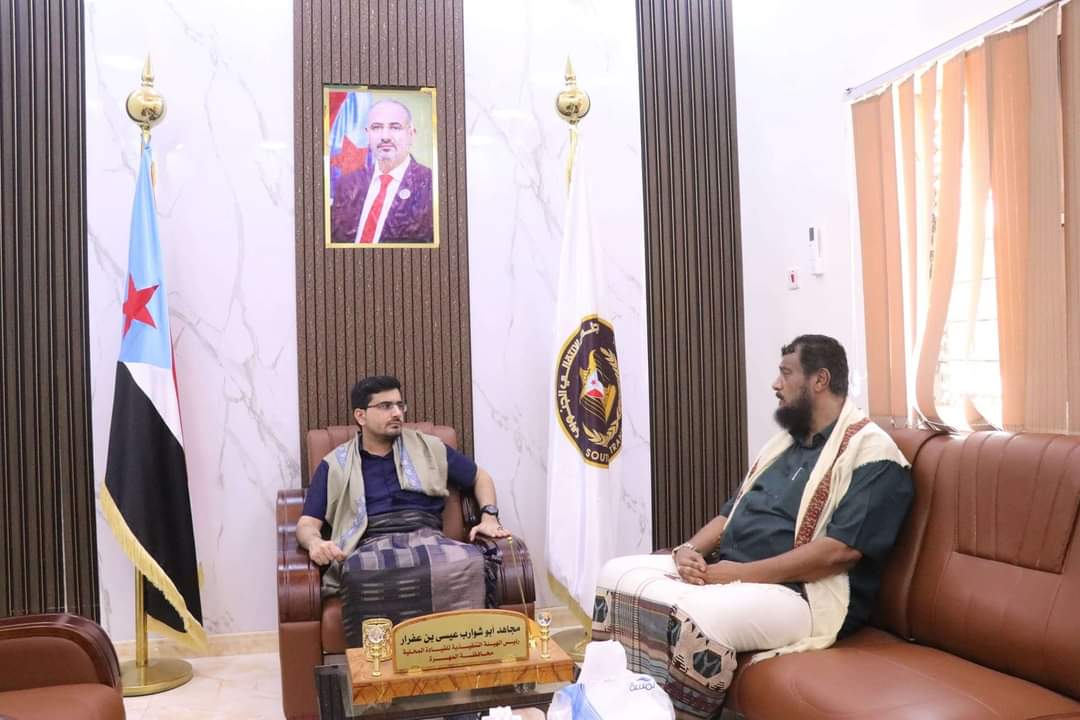 التقى رئيس الهيئة التنفيذية للقيادة المحلية للمجلس الانتقالي الجنوبي في محافظة المهرة، مجاهد بن عفرار، اليوم الخميس، مستشار المحافظ لشوؤن مديرتي سيحوت والمسيلة، رئيس نادي شباب سيحوت الرياضي، الشيخ سعيد سالم السماحي.