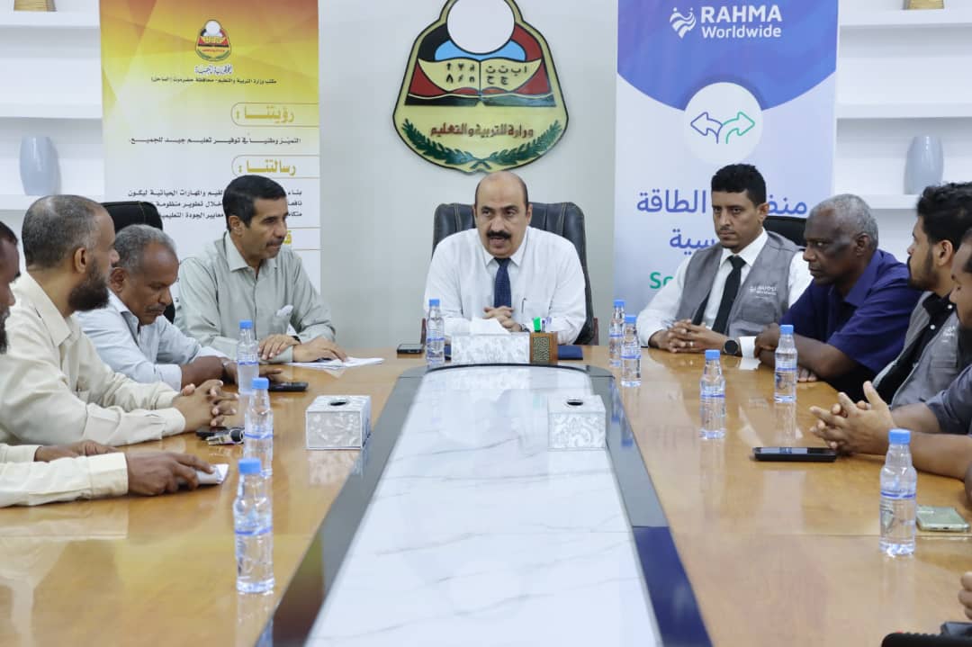 مشيداً باستمرارية تدخلات منظمة رحمة للإغاثة والتنمية والتي كان لها الأثر في طباعة الكتاب المدرسي وتدريب معلمي الحاسوب بثانويات المكلا وغيرها من المشاريع التربوية والتعليمية .