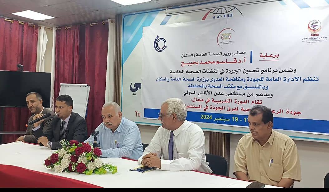 وتضمنت الفعاليات، إقامة دورة تدريبية في مجال جودة الرعاية الصحية الأولية يشارك فيها 80 كادراً من الأطباء ومسؤولي الجودة والفنيين في المستشفيات الخاصة بمحافظة عدن، والتي تهدف على مدى ثلاثة أيام، اكساب المشاركين معارف ومهارات علمية تهدف إلى رفع القدرات في مجال جودة الرعاية الصحية ومكافحة العدوى، والتعرف على الأهداف الدولية لسلامة المرضى، ومفهوم السلامة واعباءها، وتقييم المخاطر في مكافحة العدوى والأمراض المنقولة بالدم، وكذا الاحتياطات القياسية والاحترازات الأساسية، ونظافة البيئة، والحوكمة ومفاهيمها، واللقاح والعلاج والتشخيص والمضاعفات.