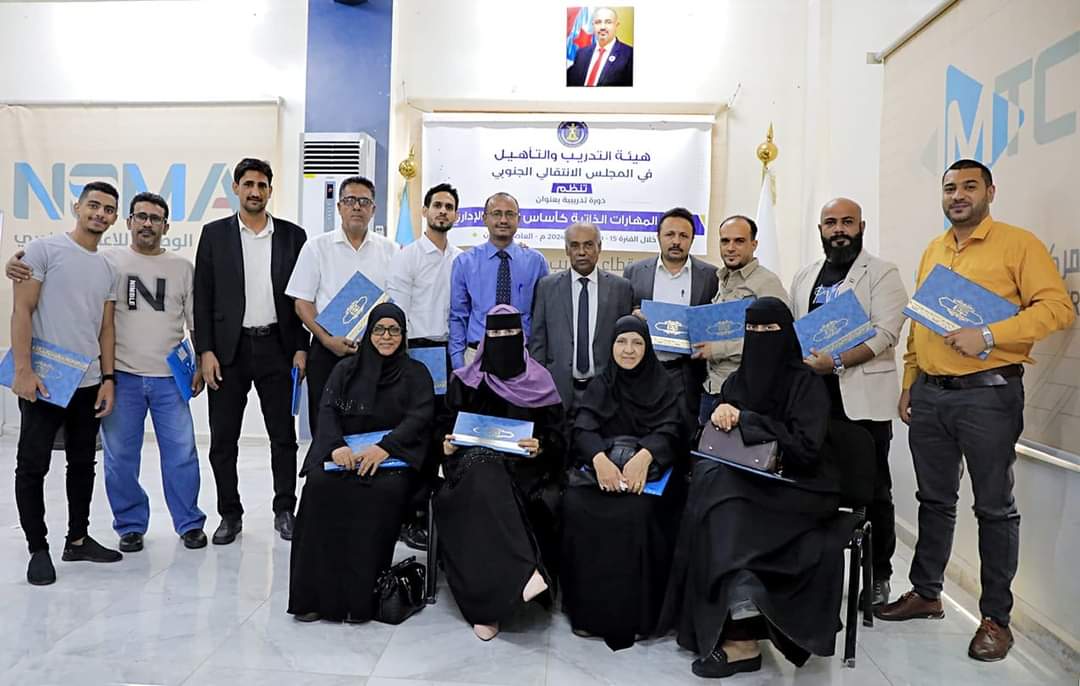 اختتمت هيئة التدريب والتأهيل المساعدة لهيئة رئاسة المجلس الانتقالي الجنوبي، اليوم الخميس، دورة تدريبية بعنوان “تنمية المهارات الذاتية كأساس للتميز الإداري”.