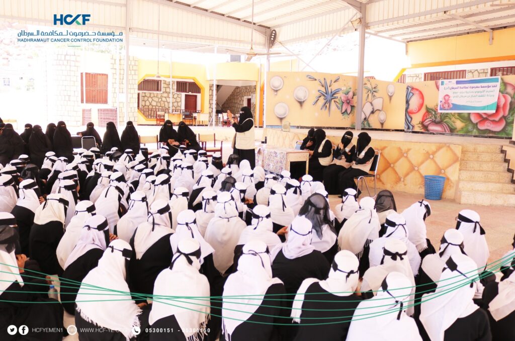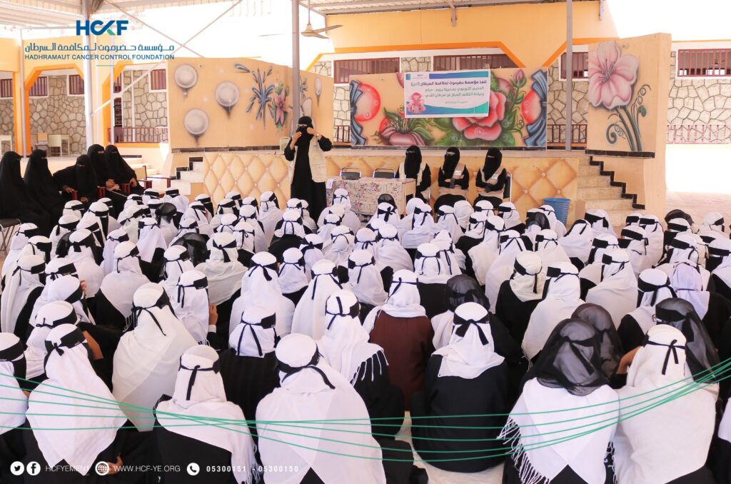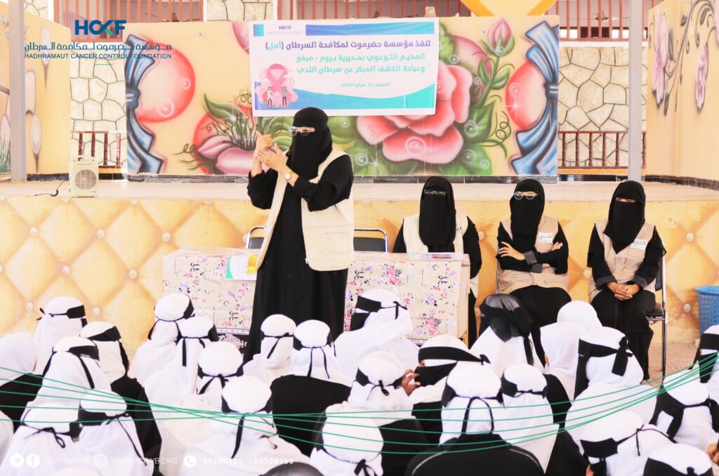كما تم أيضاً إقامة محاضرات توعوية صحية لطالبات الثانويات البالغ عددهن حوالي (128)طالبة لإيضاح أهمية الفحص الدوري لسرطان الثدي وذلك لتجنب خطر الاصابة به مبكرا لاقدّر الله، وتدريبهن على طريقة الفحص الذاتي وتوجيههن إلى عيادات مؤسسة حضرموت لمكافحة السرطان في حال وجود اشتباه بأي حالة أو ظهور أعراض للمرض.