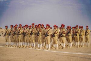 ونفذ الخريجون عرضاً عسكرياً استعرضوا من خلاله قدراتهم وجاهزيتهم لتنفيذ جميع المهام الأمنية والعسكرية لحماية الشخصيات الرسمية والهامة وكافة المنشآت والمواقع الرسمية والعامة، وتنفيذ خطط الحماية الأمنية اللازمة لها.