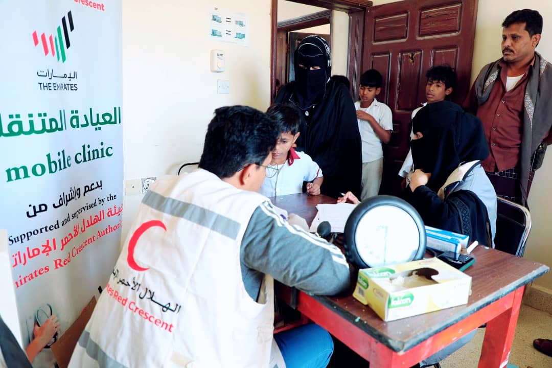 تواصل دولة الإمارات العربية المتحدة، تقديم الرعاية الطبية المجانية لسكان القرى والمناطق النائية في مختلف مناطق محافظة حضرموت عبر العيادات الطبية المتنقلة التي تسيّرها هيئة الهلال الأحمر الإماراتي وذلك ضمن الدور الإنساني الذي تقوم به الهيئة لتخفيف معاناة السكان في هذه المناطق.