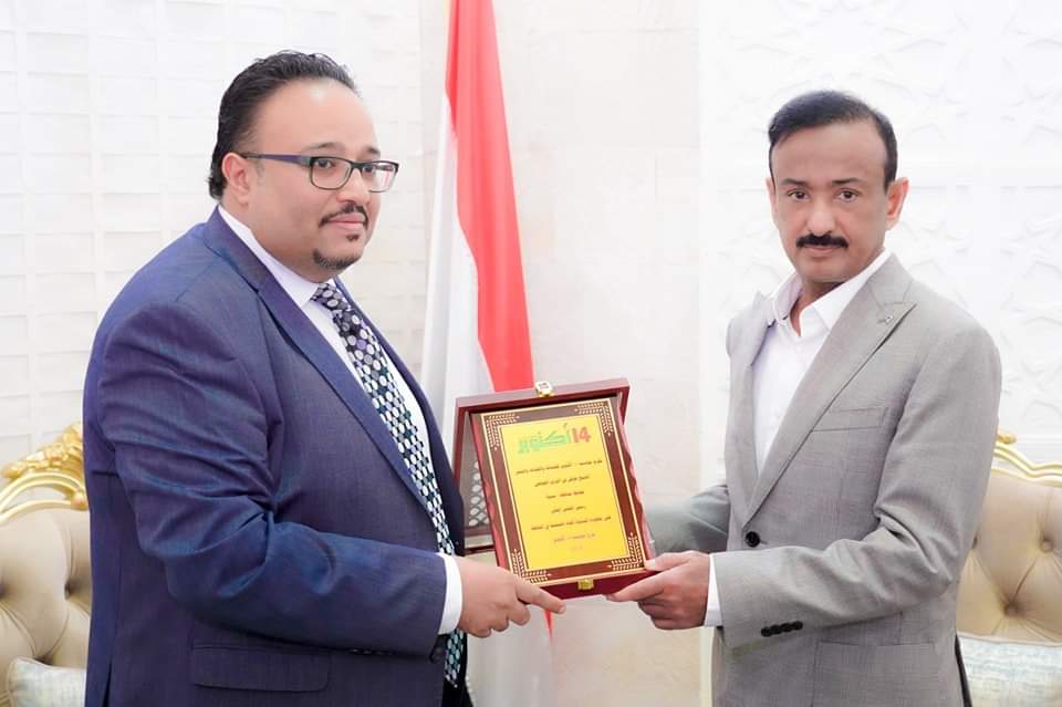 وثمن باشراحيل” الجهود الكبيرة التي يبذلها المحافظ لتحسين الخدمات المقدمة للمواطنين وتعزيز أداء مؤسسات الدولة، وقدم درعًا لمؤسسة 14 أكتوبر للمحافظ ابن الوزير تقديرًا لذلك، متمنيًا له مزيدًا من التوفيق في مهامه.