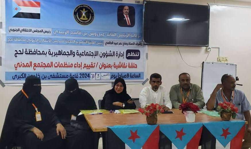 نظمت إدارة الشؤون الاجتماعية والجماهيرية بالهيئة التنفيذية للقيادة المحلية للمجلس الانتقالي الجنوبي في محافظة لحج، اليوم الخميس، ورشة عمل بعنوان “تقييم أداء منظمات المجتمع المدني بالمحافظة”.