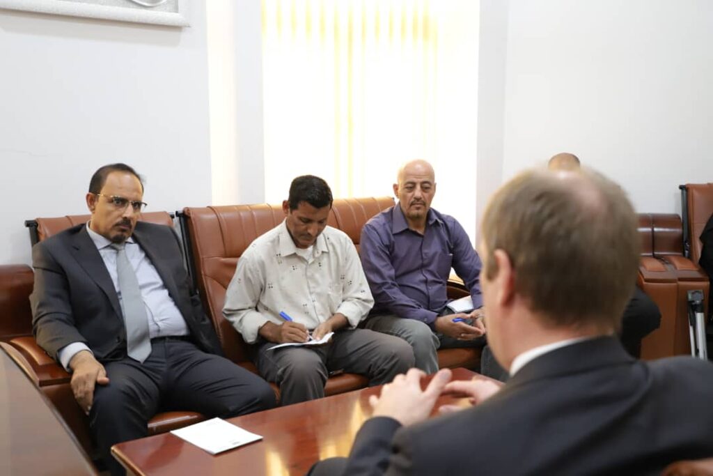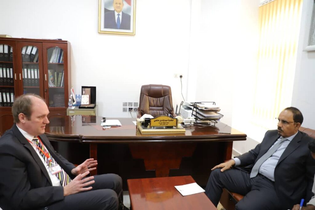 وناقش المحافظ خلال استقباله مدير المشروع من جمهورية المانيا الاتحادية السيد آيكا فيتر، ومدير القطاع السمكي والزراعي بالوكالة الدكتور محمد هاشم، ومنسق المشروع بحضرموت محمد بابكر، بحضور مدير عام مكتب التخطيط والتعاون الدولي بساحل حضرموت عمر الأشولي، سُبل تسهيل جوانب الدفع بتنفيذ المشروع الحيوي الذي يهدف الى دعم المزارعين والصيادين في محافظة حضرموت، من خلال انشاء 4 مواقع للإنزال السمكي في “حي العمال بمدينة المكلا والشحر وحصيحصة وقصيعر، حيث سيتم البدء بتنفيذ مشروعي الانزال السمكي بمنطقة حصيحصة بمديرية بروم ميفع والشحر كمرحلة أولى، الى جانب دعم المزارعين ببذور القمح والبصل وتدريبهم على الطرق الصحيحة في الزراعة والتسويق.