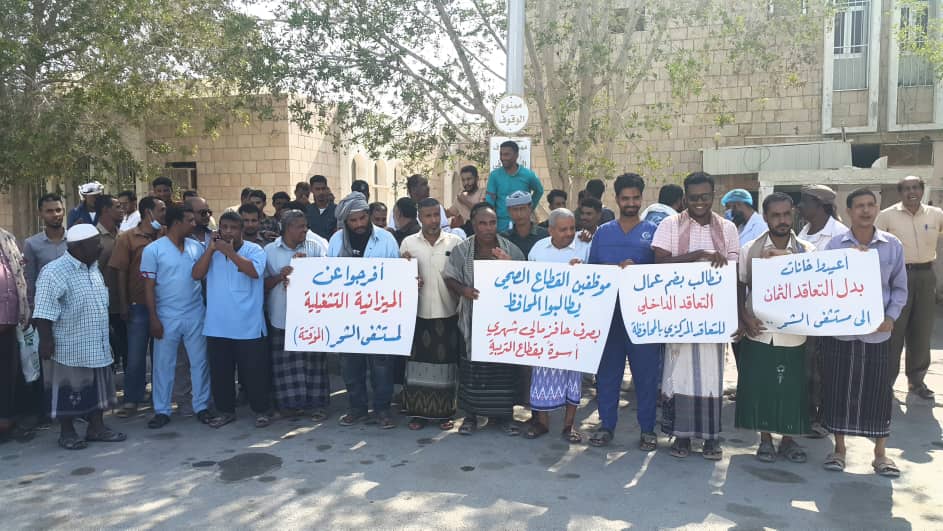 هذا وقد أشارت نقابة المهن الطبية والصحية بمديرية الشحر إلى المطالب المشروعة لموظفيها ومتعاقديها وهي على النحو التالي :