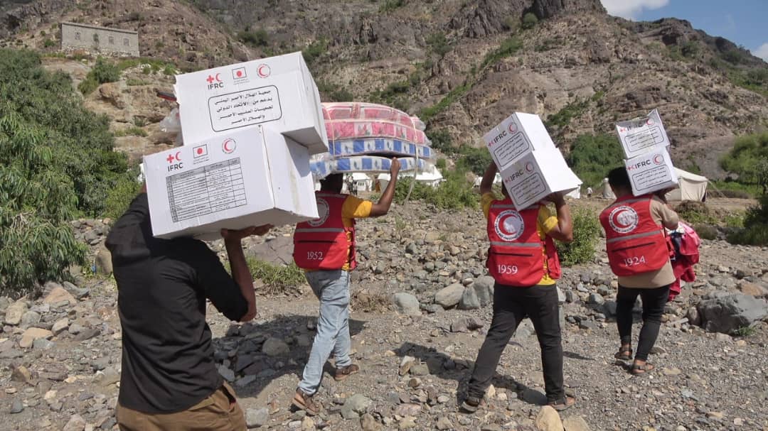 بدعم من الاتحاد الدولي لجمعيات الصليب والهلال الأحمر وزع فرع جمعية الهلال الأحمر اليمني بمحافظة لحج مواد إيوائية طارئة للأسر النازحة في منطقة قرين بمديرية المسيمير الفعالية