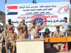 بدوره، القى قائد اللواء السادس دعم وإسناد، العميد الركن علي ناصر المعكر، كلمة، هنأ، في مُستهلها، القيادة السياسية والعسكرية العليا ممثلة بالرئيس القائد عيدروس بن قاسم الزُبيدي، بحلول الذكرى الـ(61) لثورة أكتوبر المجيدة التي انطلقت شرارتها الاولى من قمم جبال ردفان الشماء، مؤكدا على أن: “التدريب والتأهيل هو الأساس الذي تقوم عليه قواتنا المُسلحة الجنوبية، وفقا لتوجيهات الرئيس القائد عيدروس الزبيدي وترجمة وتنفيذ لاهتمامه بمنتسبي قواتنا”.