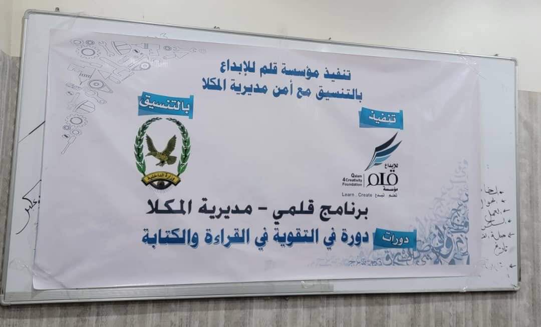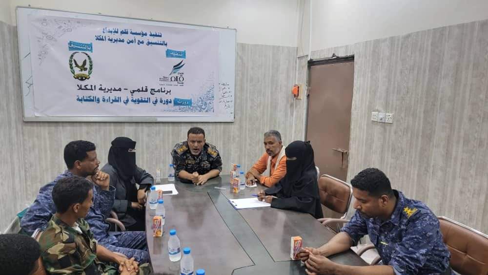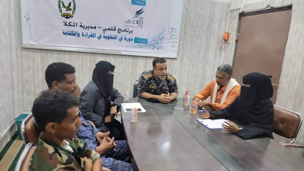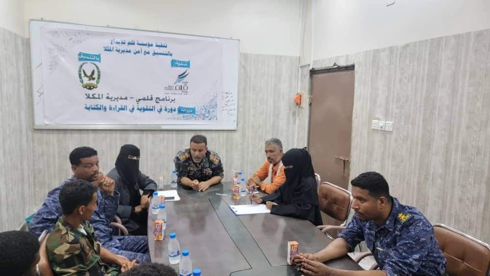 دشن العقيد صلاح سالم المشجري نائب مدير عام الأمن والشرطة بساحل حضرموت مدير أمن مديرية مدينة المكلا الدورة التدريبية الخاصة بالتقوية في القراءة والكتابة لعدد من منتسبي أمن المديرية ومراكزها ، ضمن برنامج قلمي لعام ٢٠٢٤ الذي تنفذه مؤسسة قلم للإبداع .