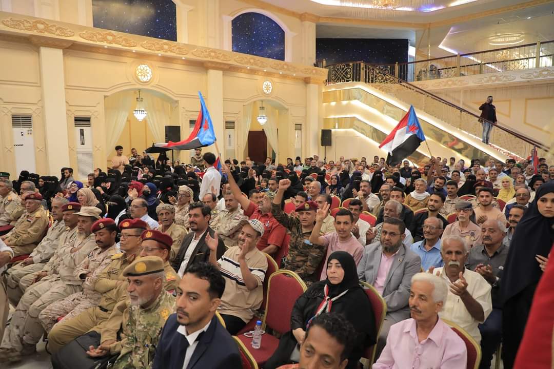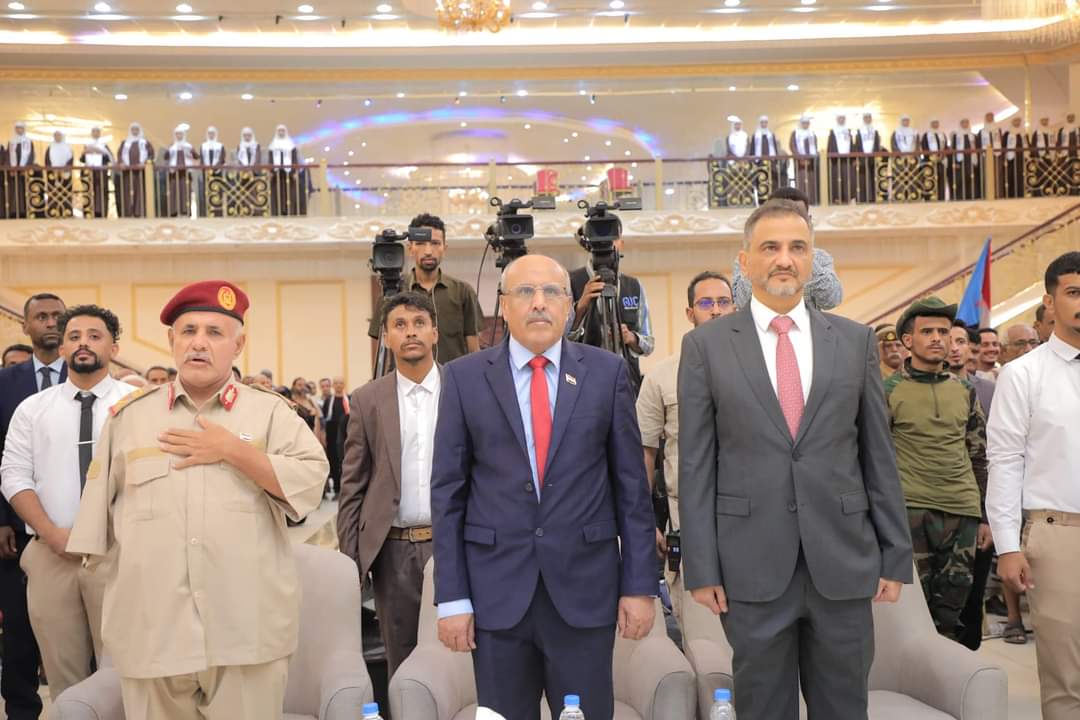 وخلال الحفل الذي حضره قيادات المجلس الانتقالي، ووزراء في حكومة المناصفة، وعدداً من القيادات العسكرية والأمنية، ألقى الأستاذ علي عبدالله الكثيري، القائم بأعمال رئيس المجلس الانتقالي الجنوبي، رئيس الجمعية الوطنية، كلمة ناقلاً في مستهلها للحاضرين تحيات الرئيس القائد عيدروس الزبيدي، رئيس المجلس الانتقالي الجنوبي.