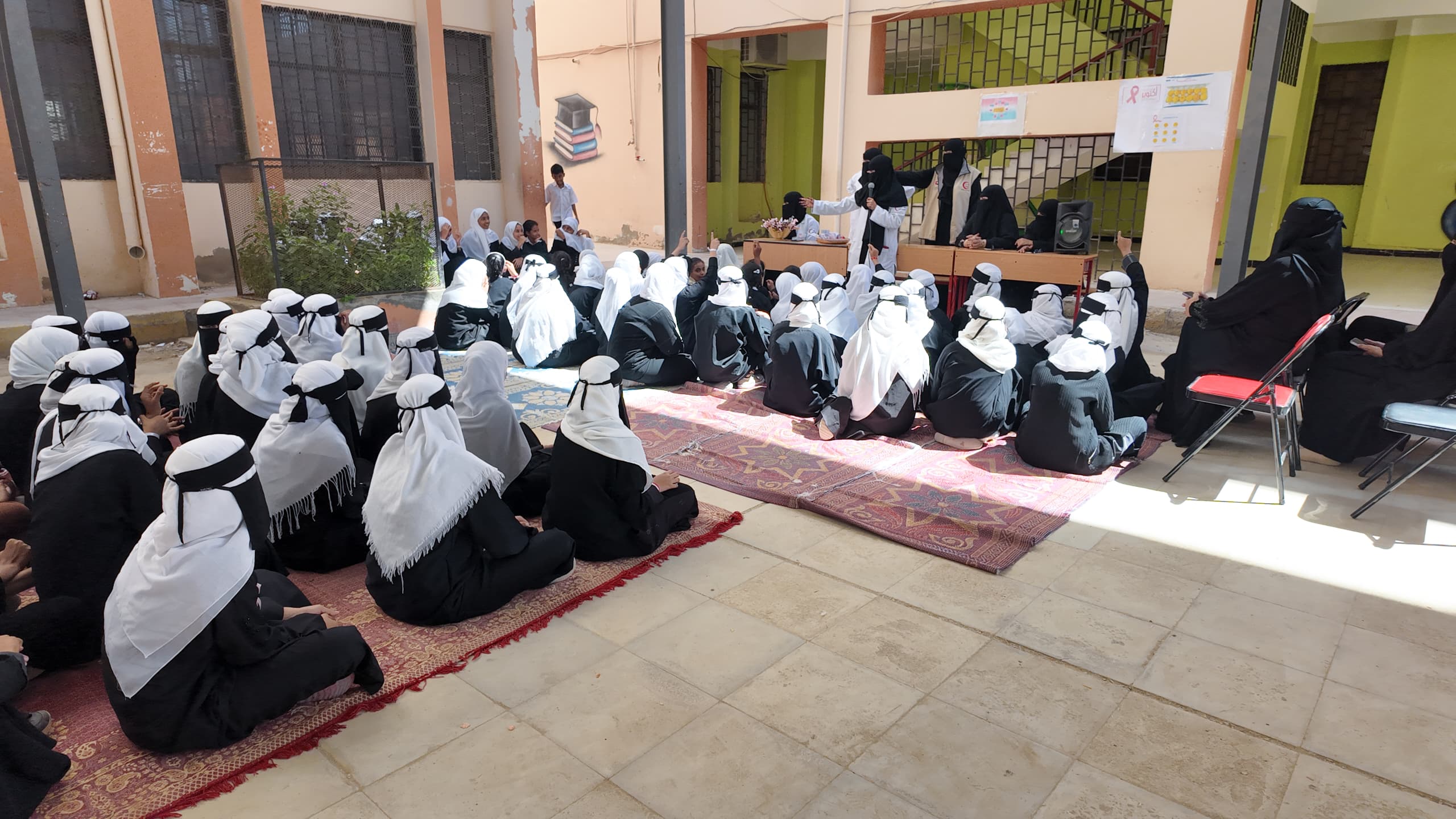 نظم مركز المحور الطبي بربوه خلف، التابع لهيئة الهلال الأحمر الإماراتي بمحافظة حضرموت، صباح اليوم، فعالية تثقيفية لطالبات ثانوية ابن الهيثم بمدينة المكلا، وذلك في إطار شهر أكتوبر “الشهر الوردي” المخصص للتوعية حول الوقاية من سرطان الثدي.