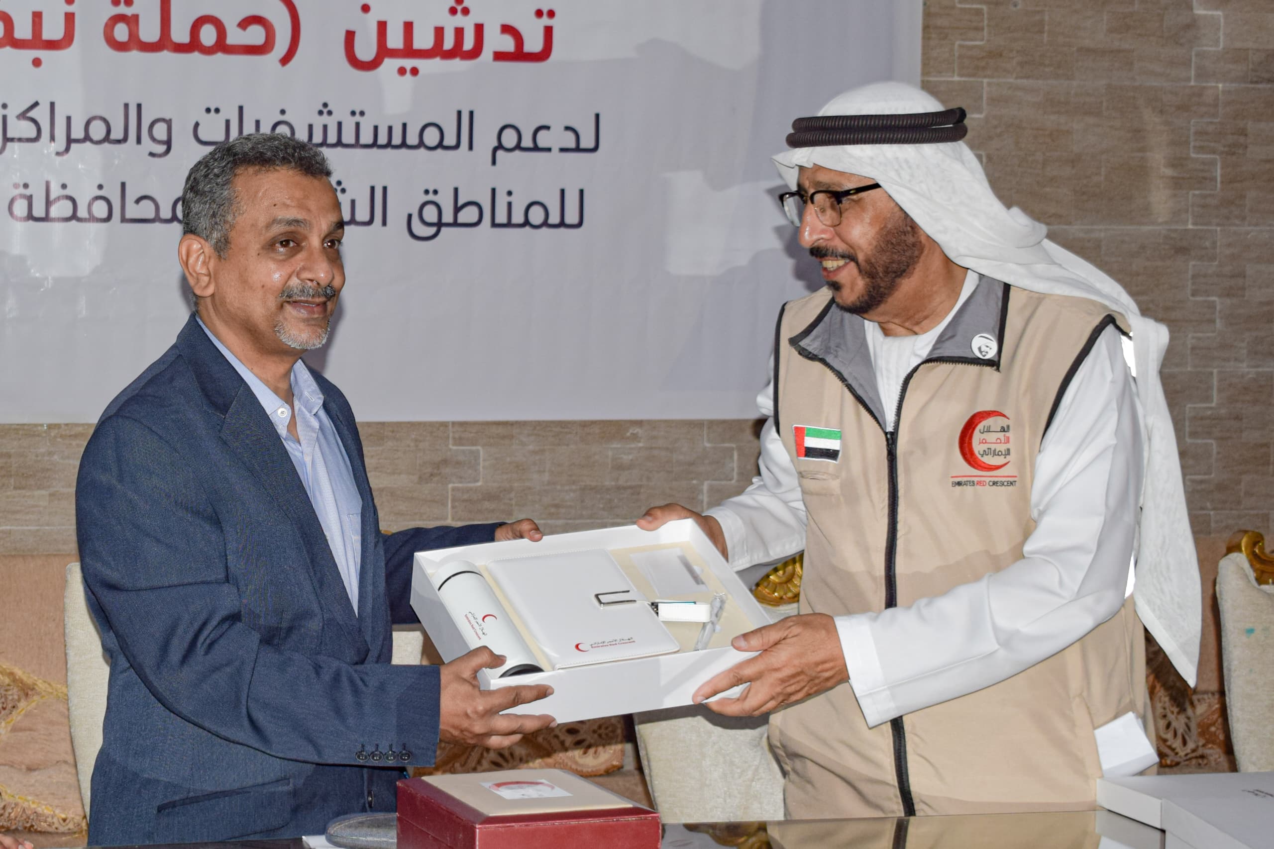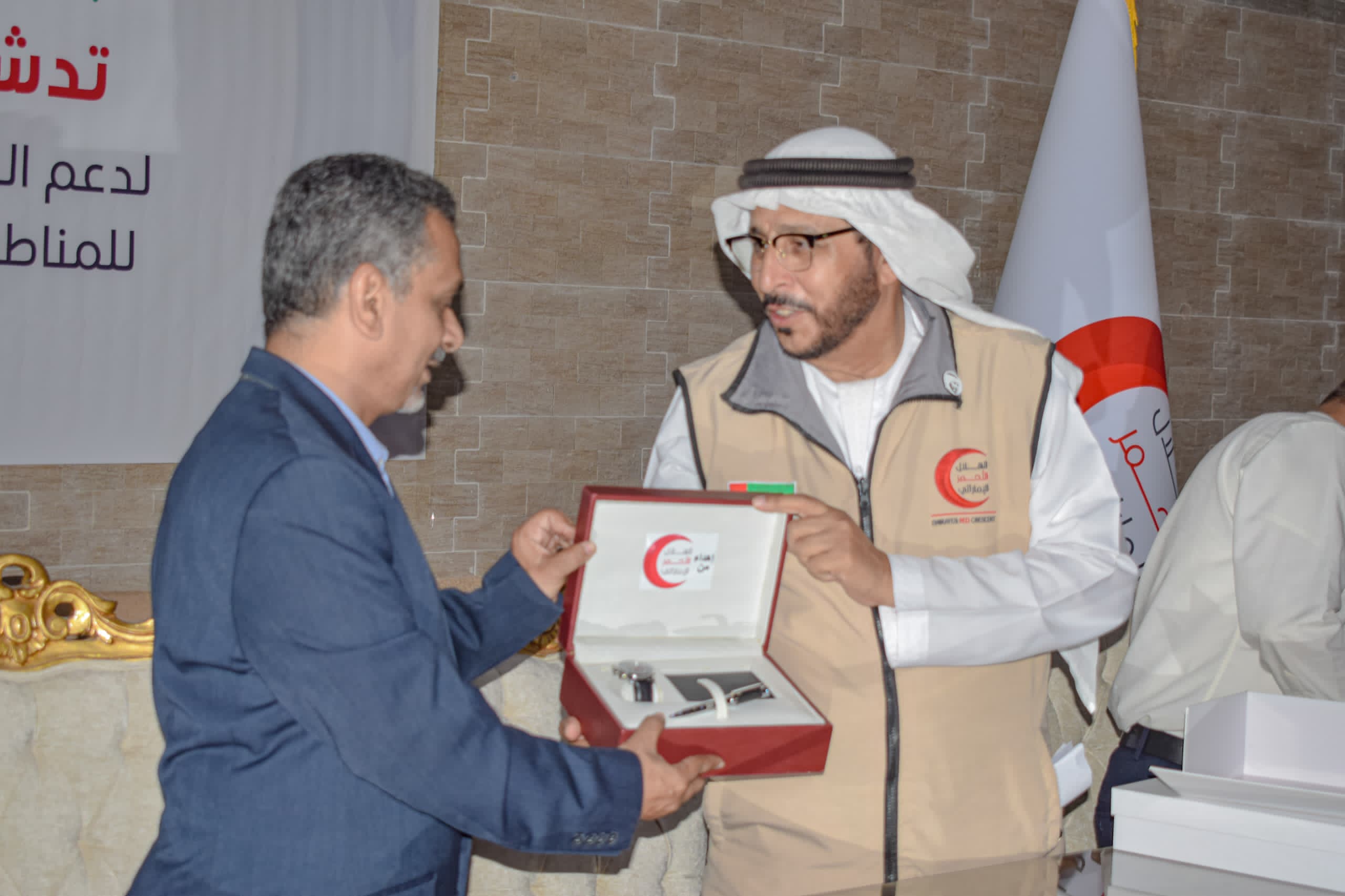 وأعرب السيد الشامسي عن شكره وتقديره لمحافظ حضرموت الأستاذ مبخوت مبارك بن ماضي ومكتب الصحة العامة والسكان على جهودهم في تسهيل عمل هيئة الهلال الأحمر الإماراتي في حضرموت، وأن هذا التعاون الفعال كان له الدور الكبير في نجاح مشاريع الهيئة ونتطلع إلى مزيد من التعاون المثمر في قادم الأيام.