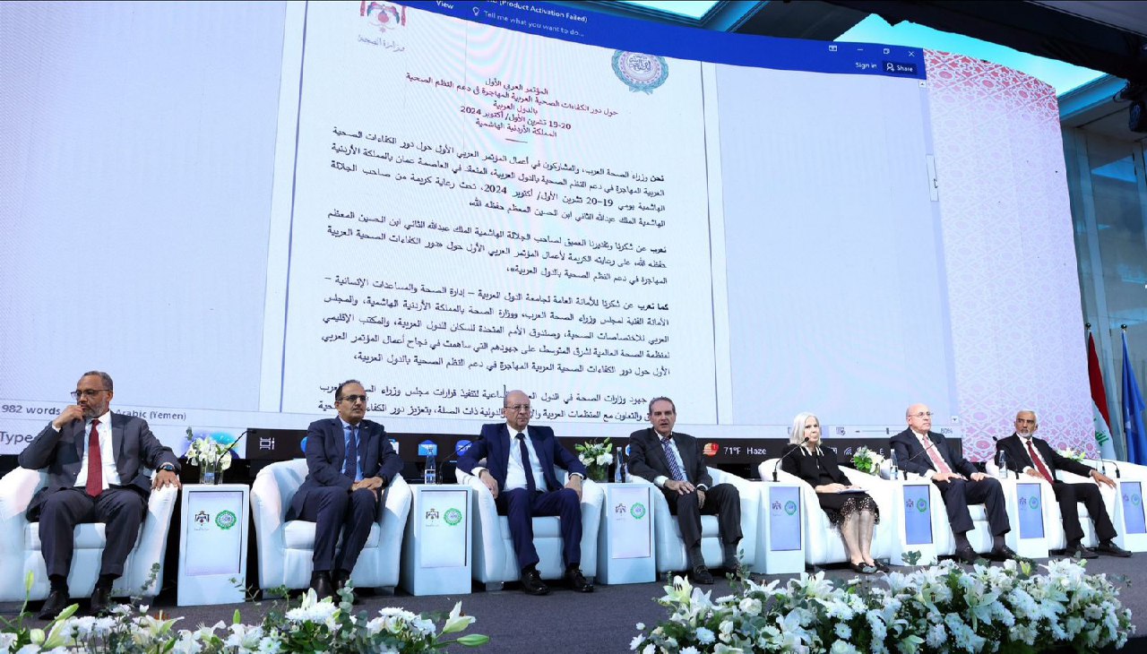 شارك وزير الصحة العامة والسكان، الدكتور قاسم بحيبح، اليوم، في المؤتمر العربي الاول حول دور الكفاءات الصحية العربية المهاجرة في دعم النظم الصحية بالدول العربية، المنعقد في المملكة الاردنية الهاشمية.