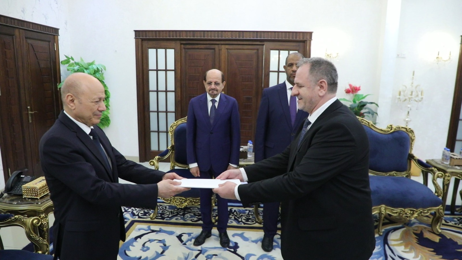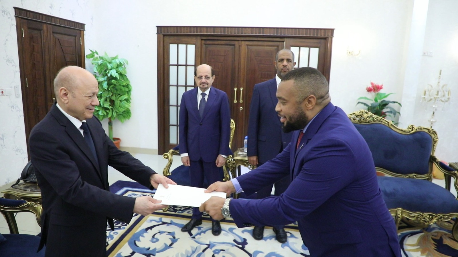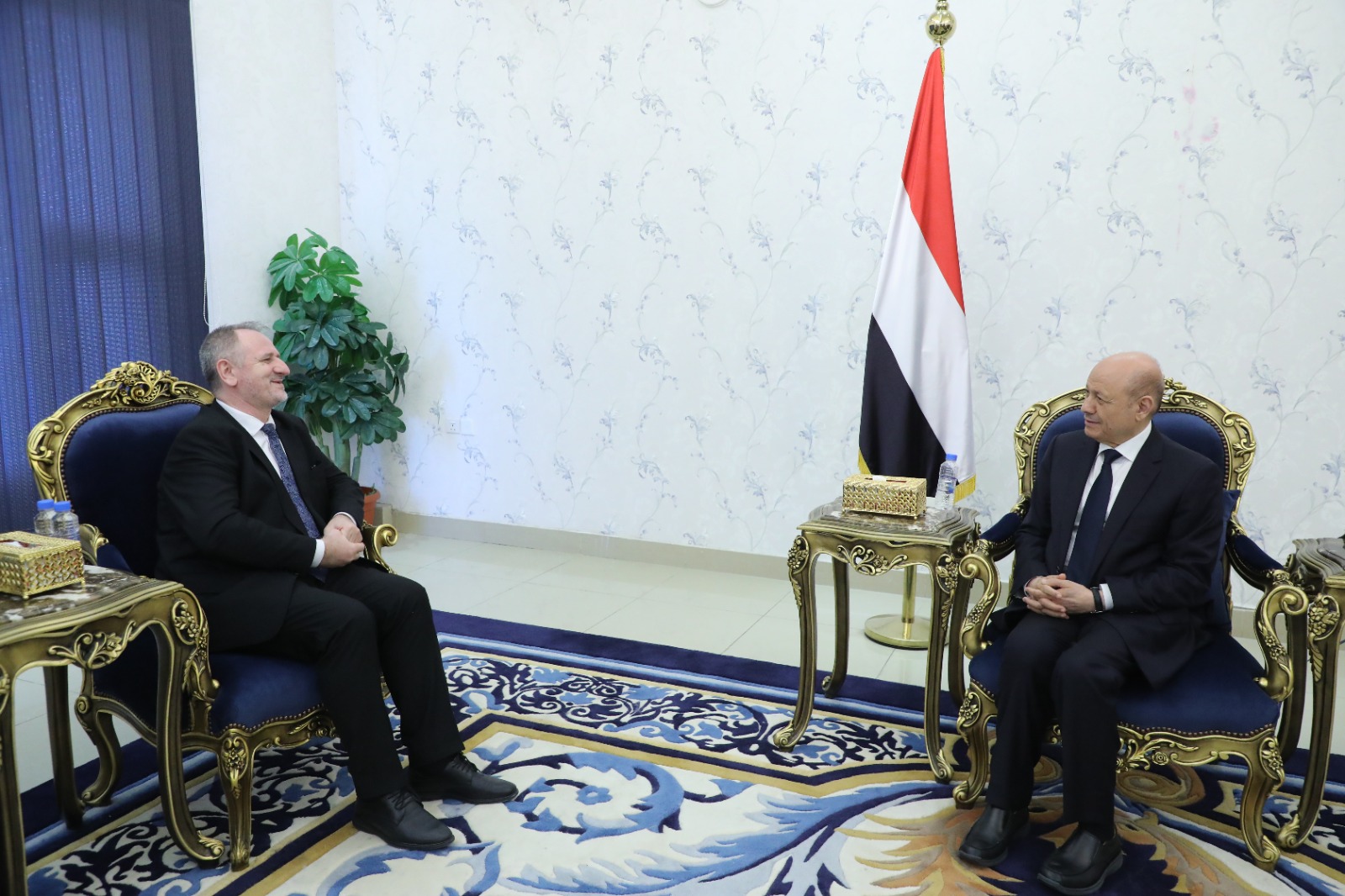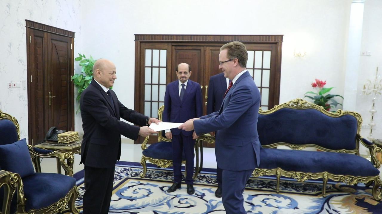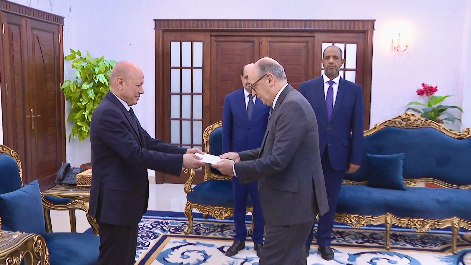 تسلم فخامة الرئيس الدكتور رشاد محمد العليمي، رئيس مجلس القيادة الرئاسي، اليوم الاربعاء، بقصر معاشيق في العاصمة المؤقتة عدن، بحضور وزير الخارجية وشؤون المغتربين الدكتور شائع الزنداني، اوراق اعتماد سفراء كل من مملكة كندا جان فيليب لينتاو ومملكة اسبانيا خورخي ايبيا سيررا.