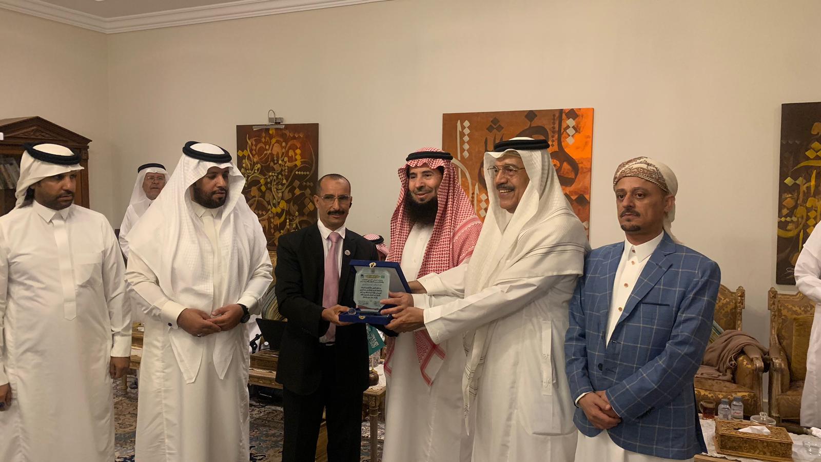 وفي ختام اللقاء قام المستشار د. منصور القاضي رئيس المجلس العربي ونائب رىيس المجلس البروفيسورد يحيى بن حمزه الوزنة ومعاهم وفد من المجلس . بتكريم صاحب السمو الأمير أحمد بن بندر السديري وتسليمه درع السلام الدولي .