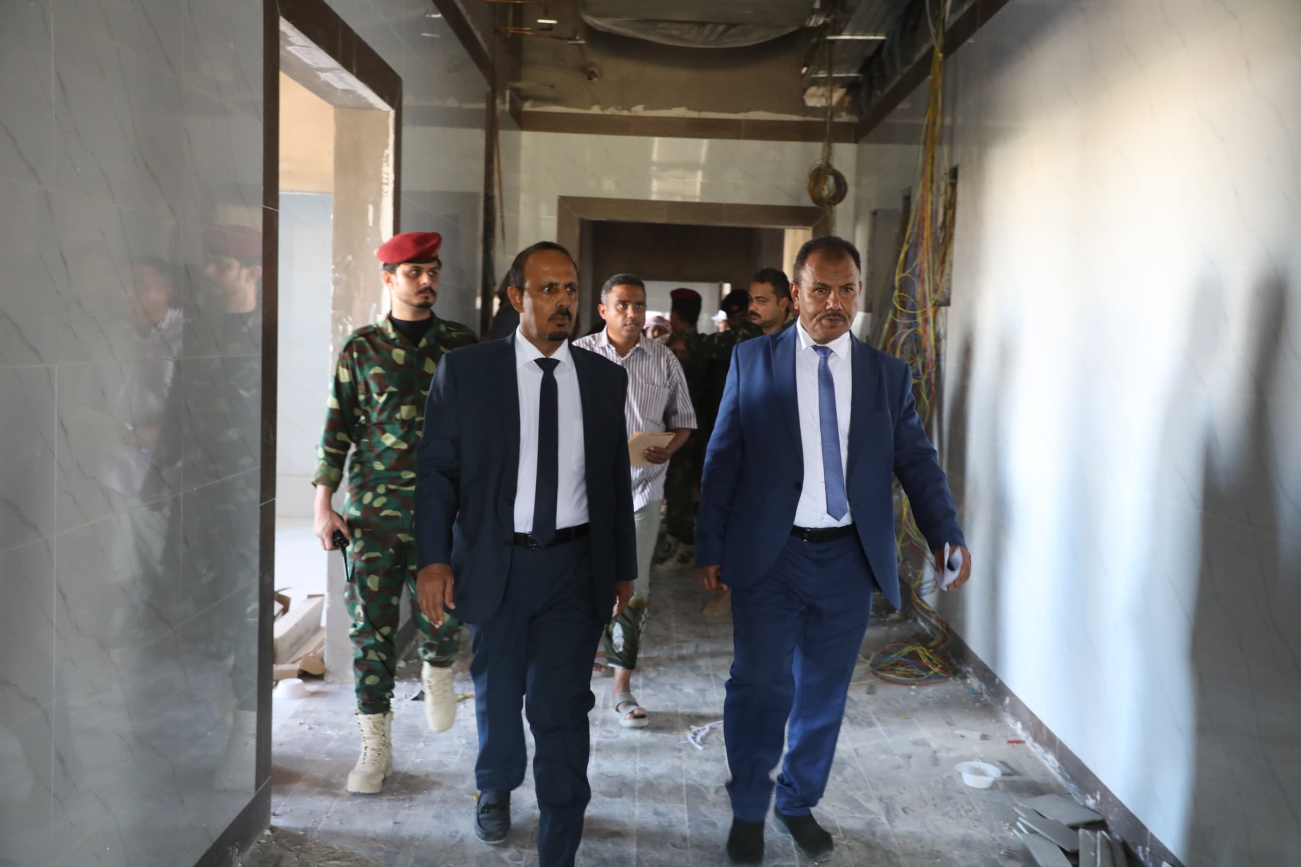 واطلع المحافظ والوكيل على مكونات المشروع، مستمعين من مهندس المشروع على نسبة الانجاز البالغة 60%، والمكون من 4 أدوار تستوعب 150 سرير ترقيد، و20 سرير عناية مركزة وأقسام للطوارئ وترقيد رجال ونساء وقسم الولادة ومختبرات وأشعة وتشريح ومستودعات لتخزين الأدوية والمعدات الطبية.