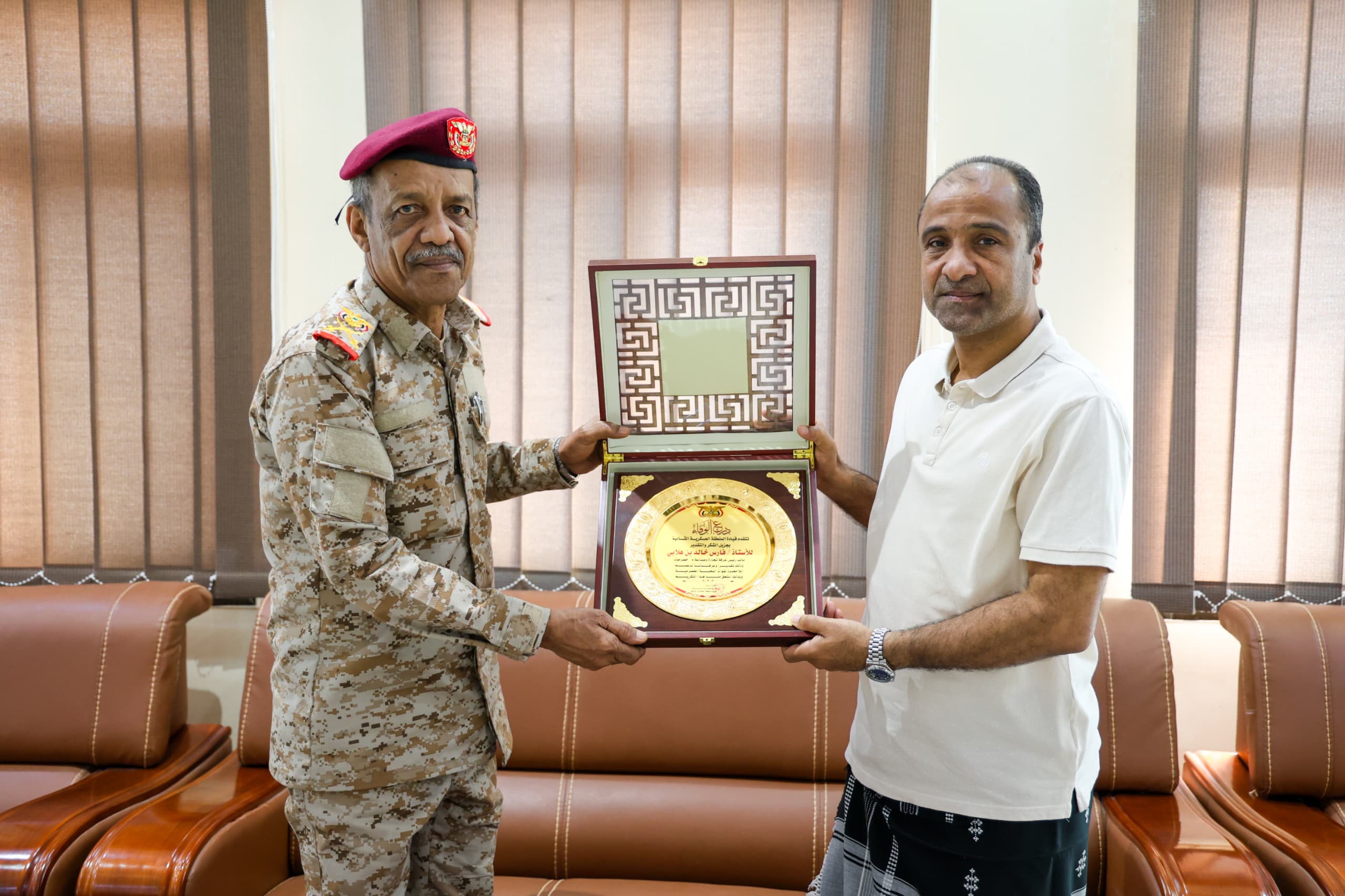 في إطار التقدير والعرفان بالدعم المتواصل لقوات النخبة الحضرمية، قام قائد المنطقة العسكرية الثانية اللواء الركن طالب سعيد بارجاش صباح اليوم الثلاثاء بتكريم الأستاذ فارس خالد بن هلابي، نائب رئيس غرفة تجارة وصناعة محافظة حضرموت ،يأتي هذا التكريم تقديرًا للدور الفعّال والدعم اللامحدود الذي قدمه بن هلابي للمنطقة، مما أسهم في تعزيز قدرات قوات النخبة الحضرمية .