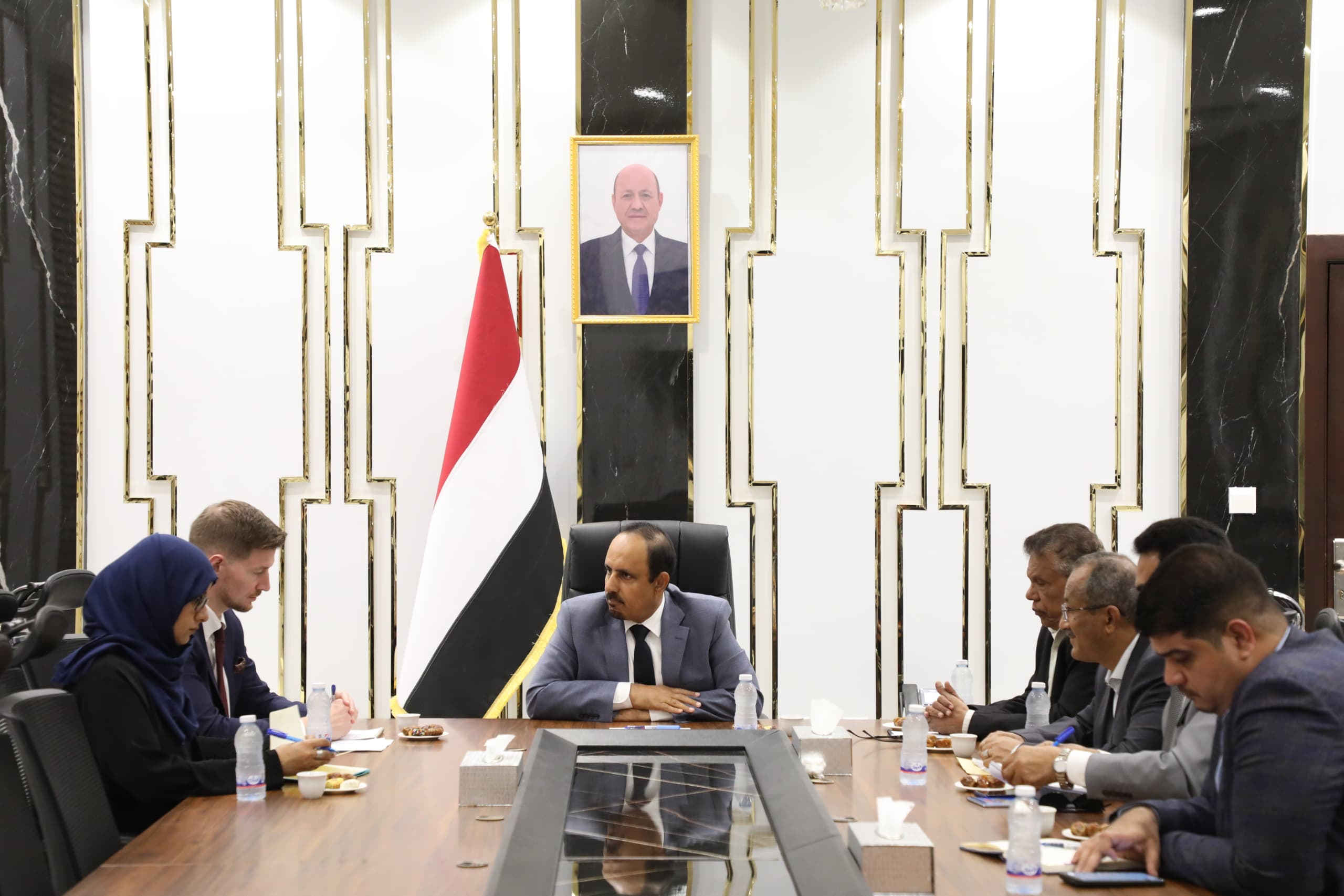 ناقش اللقاء مستجدات الأوضاع والملفات السياسية والاقتصادية، وتداعيات الوضع الاقتصادي المتدهور التي تسببت فيه انتهاكات الميليشيات الحوثية الانقلابية التي أدت الى تأزيم الوضع الاقتصادي والمعيشي، والنتائج الكارثية لاستهداف موانئ تصدير النفط والملاحة الدولية وعلى وجه الخصوص في البحر العربي، وما تمثله هذه الاعتداءات من تقويض للأمن والسلم الإقليمي والدولي.