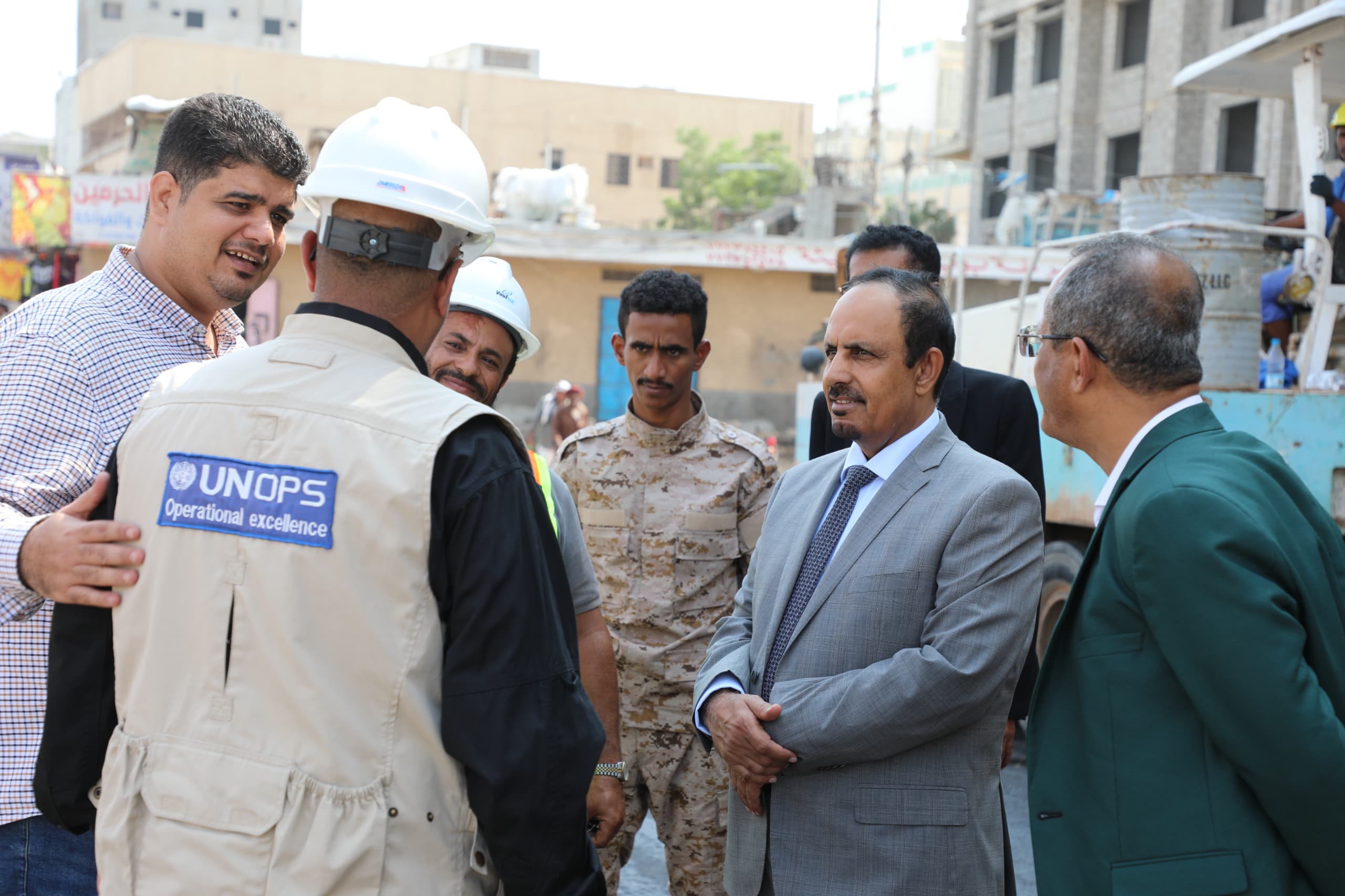 رافق المحافظ، وكيل المحافظة للشؤون الفنية المهندس أمين بارزيق، ومدير عام مديرية مدينة المكلا المهندس صالح العمري، ومثل مكتب الأمم المتحدة لخدمات المشاريع المهندس أحمد الميسري.