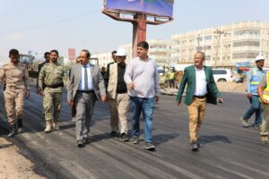 تفقد محافظ حضرموت الأستاذ مبخوت مبارك بن ماضي، اليوم سير العمل في انجاز 60% من مشروع صيانة وتأهيل المدخل الشرقي لمدينة المكلا “من جولة شركة النفط الى جسر بويش الأرضي”.