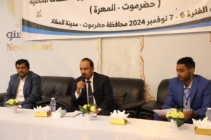ونقل الأمين العام للمجلس المحلي بمحافظة المهرة الأستاذ سالم نيمر ، تحيات محافظ المهرة الاستاذ محمد علي ياسر وتمنياته لهذه الورشة بالنجاح، مؤكدًا ترحيب السلطة المحلية بالمهرة بتعزيز جوانب التعاون المشترك وتبادل الخبرات مع السلطة المحلية بحضرموت في سياق العلاقات المتميزة بين المحافظتين، شاكرًا مواقف حضرموت بمختلف قطاعاتها مع إخوانهم في المهرة في مختلف المراحل تماشيًا مع العلاقات الاجتماعية المتميزة التي تربط أبناء المحافظتين.