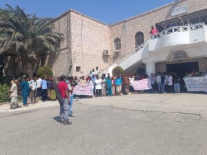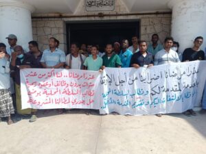 وبدأ المتعاقدين إضرابهم المفتوح عن العمل الذي دعت له لجنة المتعاقدين بالهيئة بوقفه احتجاجية أمام بوابة الإدارة رفعت خلالها لافتات تطالب بتحقيق مطالبهم المشروعة وأبرزها صرف راتب سبتمبر واكتوبر