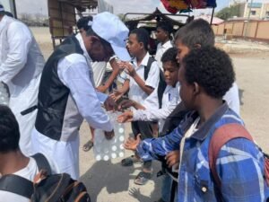 استكملت فرقة التوعية الثقافية للمسرح التابعة لمكتب وزارة الثقافة ساحل حضرموت توزيع(6500)قنينة ماء باردة في مدن المكلا والشحر وغيل باوزير وشحير أمس الأربعاء . أوضح ذلك الفنان محفوظ علي باجبير رئيس الفرقة مضيفا أن المشروع يأتي بتمويل من مجموعة مكة التجارية لمالكها ومديرها التنفيذي الشيخ/أحمد محمد الجويحي مقدما في مستعرض حديثه الشكر الجزيل للمدير التنفيذي للمجموعة على تبني هذا المشروع الذي سيشكل باكورة تعاون بين الفرقة والمجموعة في قابل الأيام لتنفيذ عدد من البرامج والأنشطة الأخرى.