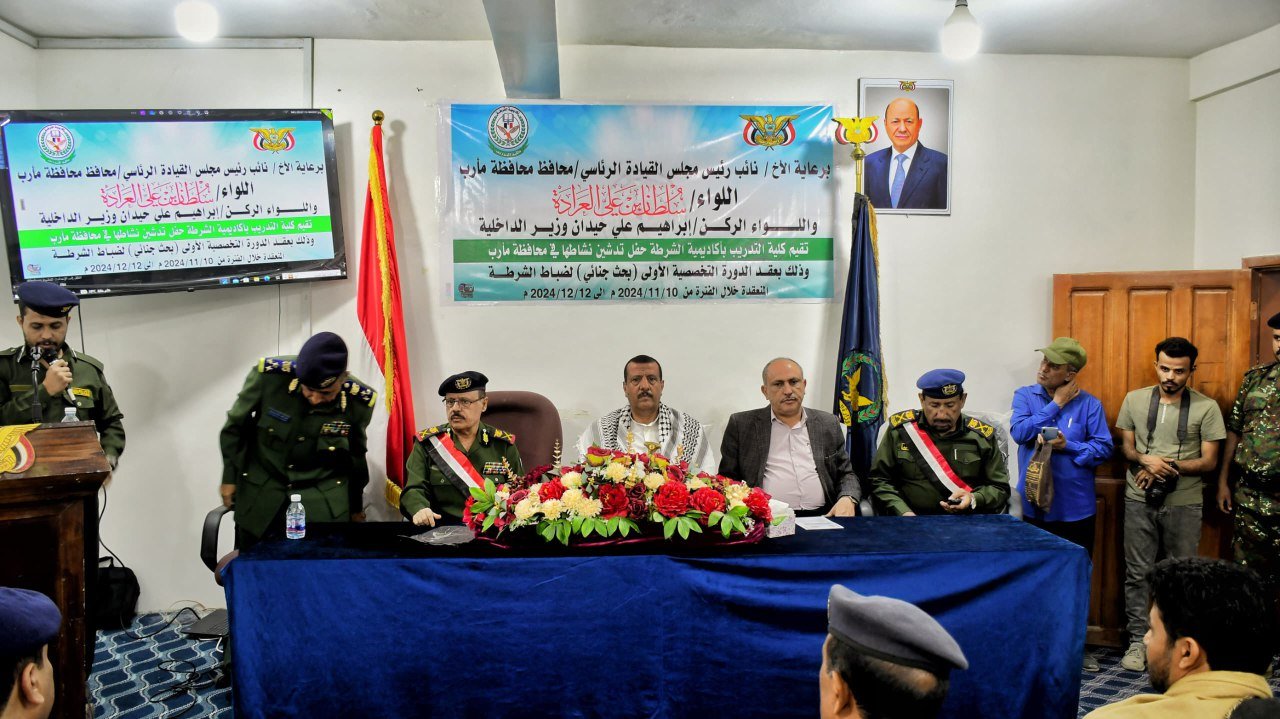 نفذت كلية التدريب التابعة لأكاديمية الشرطة في محافظة مأرب، اليوم، نشاطها بعقد الدورة التخصصية الاولى في مجال البحث الجنائى لـ60 ضابطاً من منتسبي الشرطة في عدد من المحافظات وتسستمر شهرا كاملا.