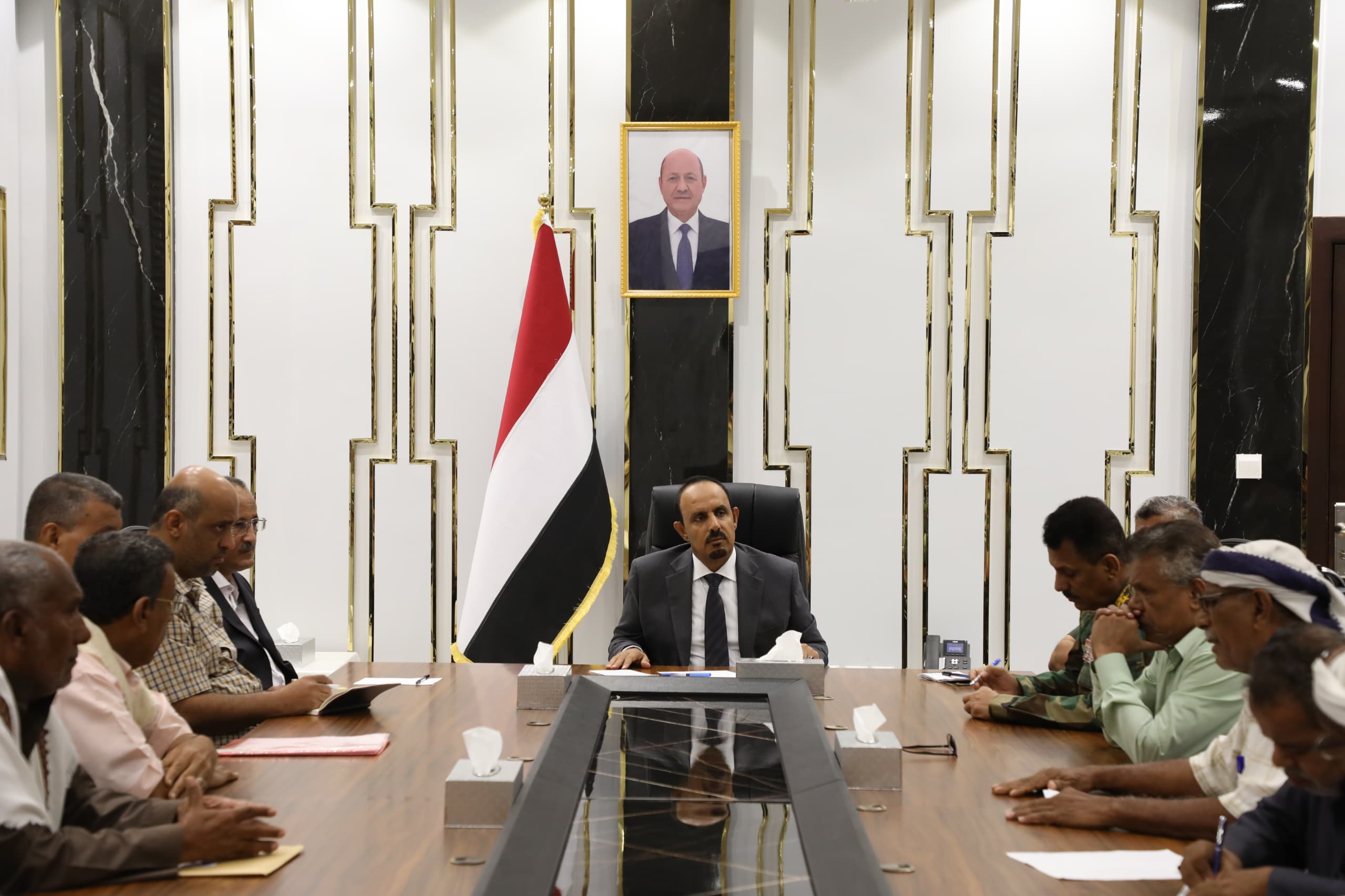 التقى محافظ حضرموت الاستاذ مبخوت مبارك بن بن ماضي، اليوم بالمكلا، لجنة صيادي مدينة شحير بمديرية غيل باوزير.