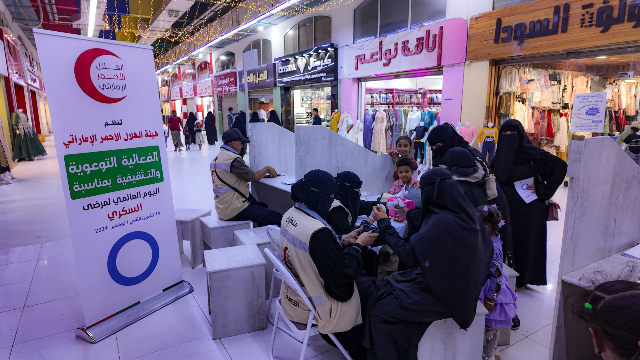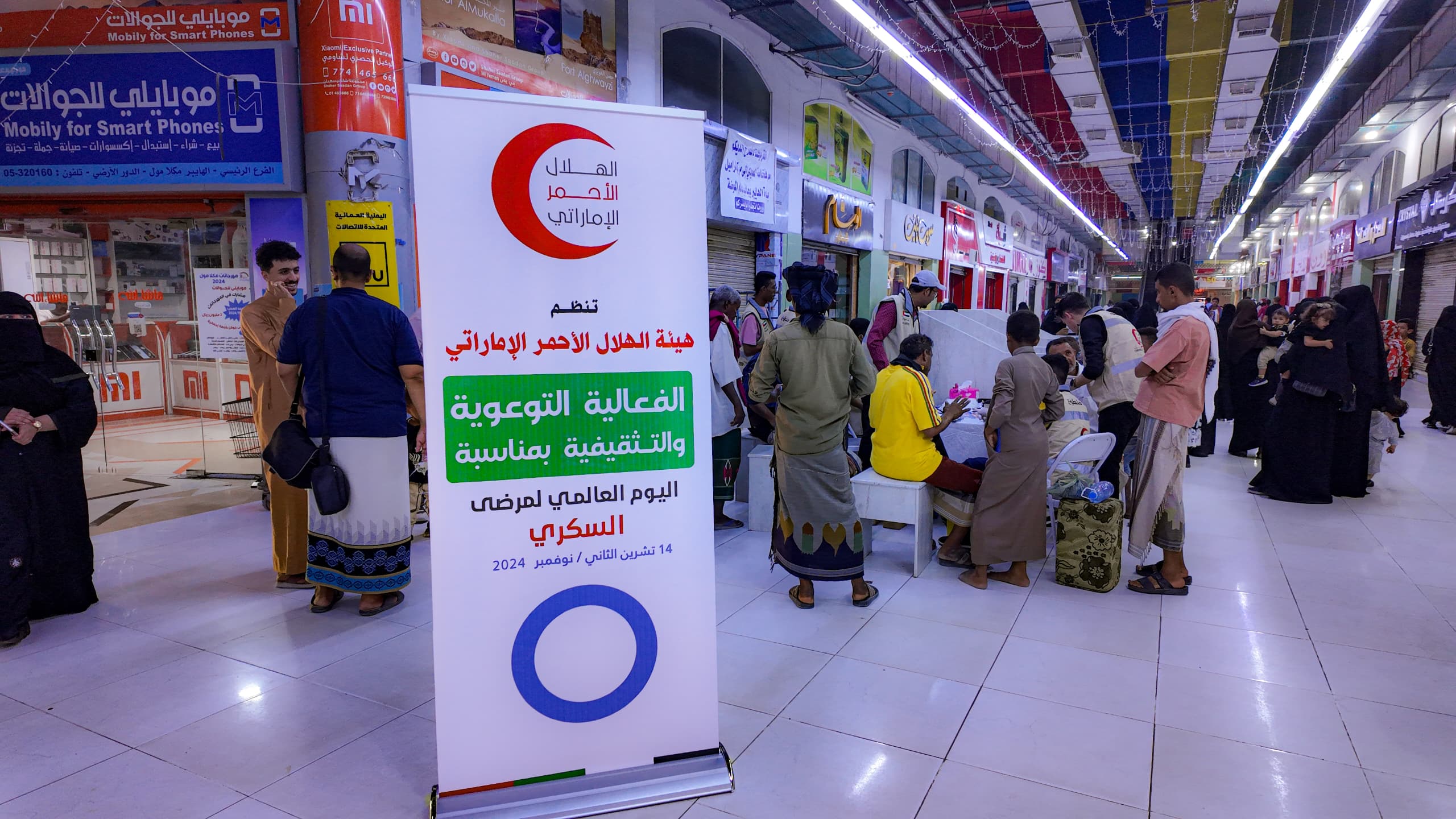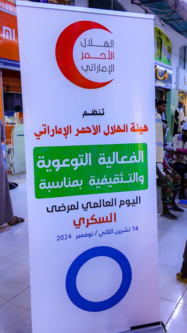 في إطار الاحتفال باليوم العالمي للسكري، الذي يُحتفى به في 14 نوفمبر من كل عام، نظمت هيئة الهلال الأحمر الإماراتي فعالية توعوية في محافظة حضرموت، وذلك في أحد المراكز التجارية بمدينة المكلا.