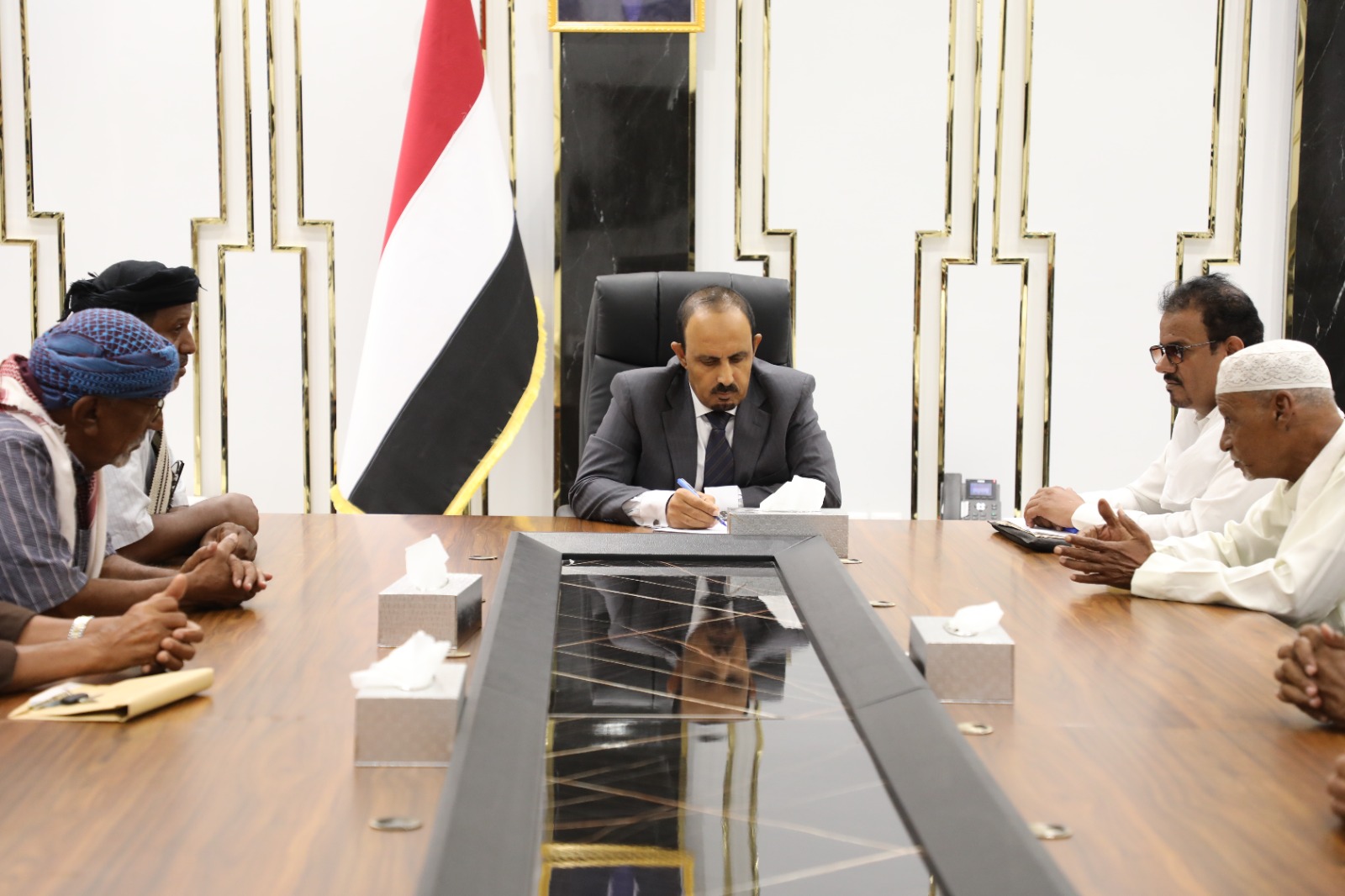 التقى محافظ حضرموت، الأستاذ مبخوت مبارك بن ماضي بالمكلا اليوم رئيس وأعضاء الهيئة التنفيذية لكتلة حلف وجامع حضرموت، برئاسة المقدم سالم مبارك بن سميدع، وفي اللقاء تم استعراض أهم القضايا والمستجدات في المحافظة وتحديد أولويات مجالات التنمية والخدمات والأمن.