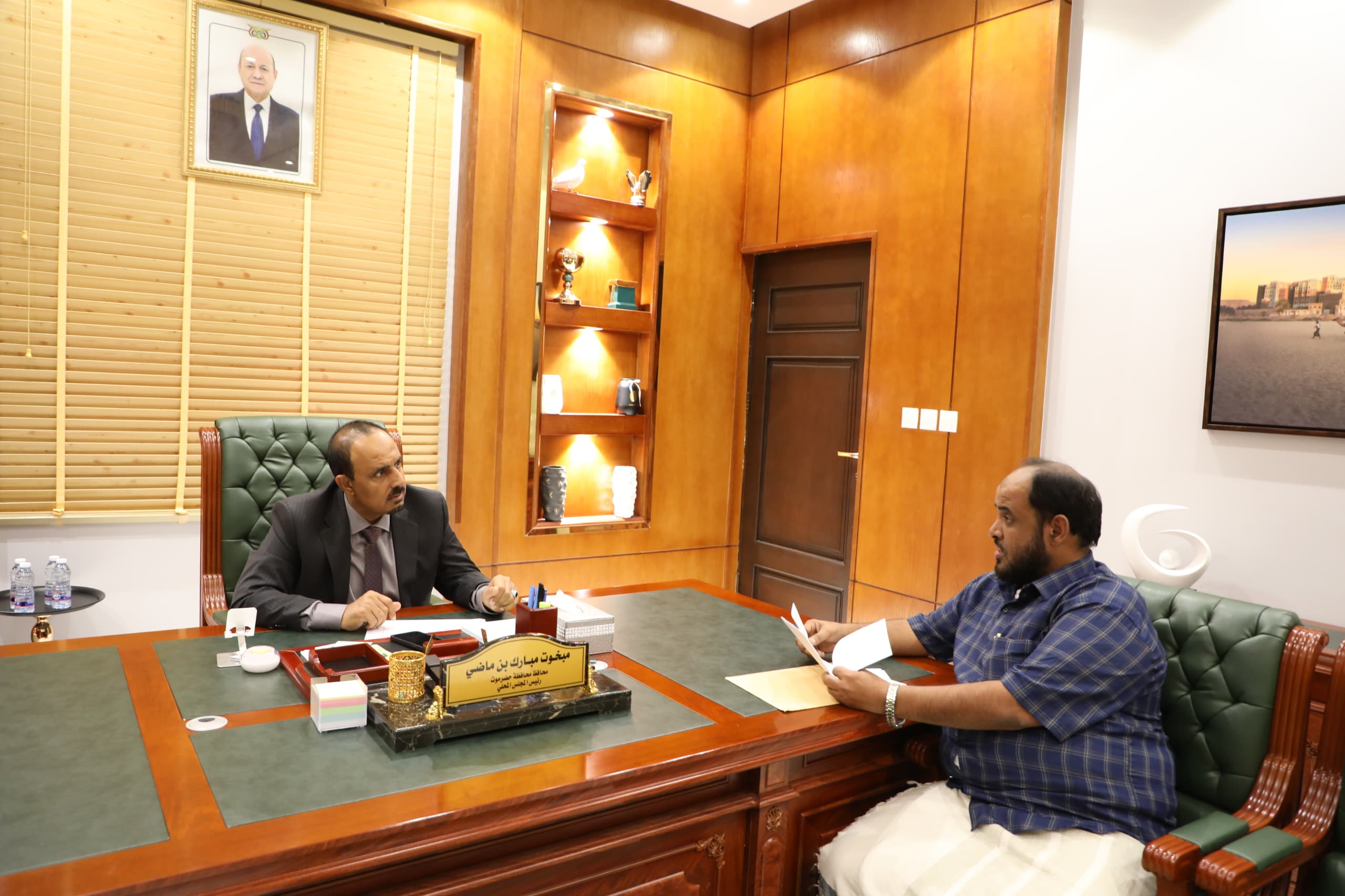 التقى محافظ حضرموت الأستاذ مبخوت مبارك بن ماضي، اليوم بالمكلا، مدير عام مديرية الديس الشرقية عوض مسلّم العجيلي.