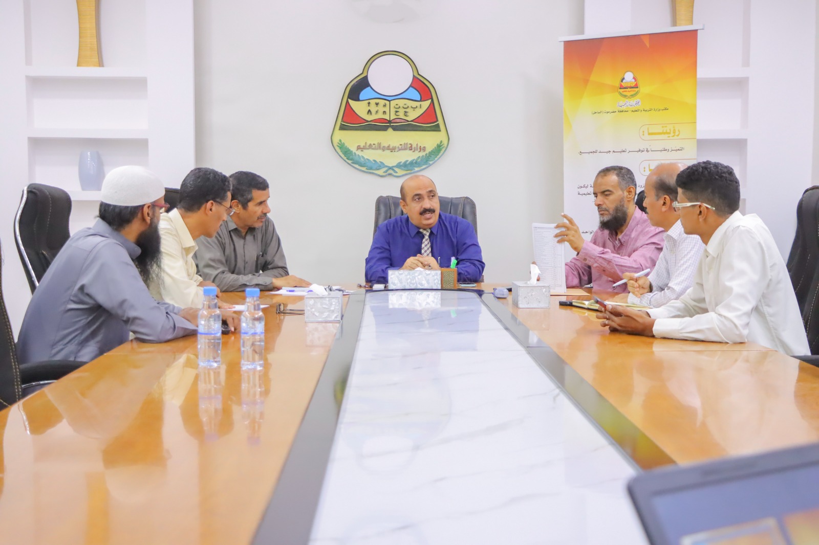 عقد اجتماع بمكتب وزارة التربية والتعليم بساحل حضرموت كرس لمناقشة آلية الإجراءات التنفيذية لبرامج القيم التربوية وجائزة المعلم ومهارات الحاسوب ومعرض الوسائل التقنية والابتكارات على مستوى مدارس و ثانويات مديريات المحافظة