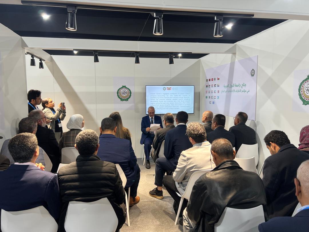 وفي افتتاح الورشة التي عقدت في جناح جامعة الدول العربية، استعرض الوزير الشرجبي، الأزمات الإنسانية التي تمر بها اليمن نتيجة انعدام الامن الغذائي الناجم عن اثار التغيرات المناخية الحادة.. لافتاً إلى أن اليمن أحد أكثر البلدان عرضة لتأثيرات تغير المناخ في العالم وهو ما يخلق الكثير من التحديات في القطاعات الحيوية.