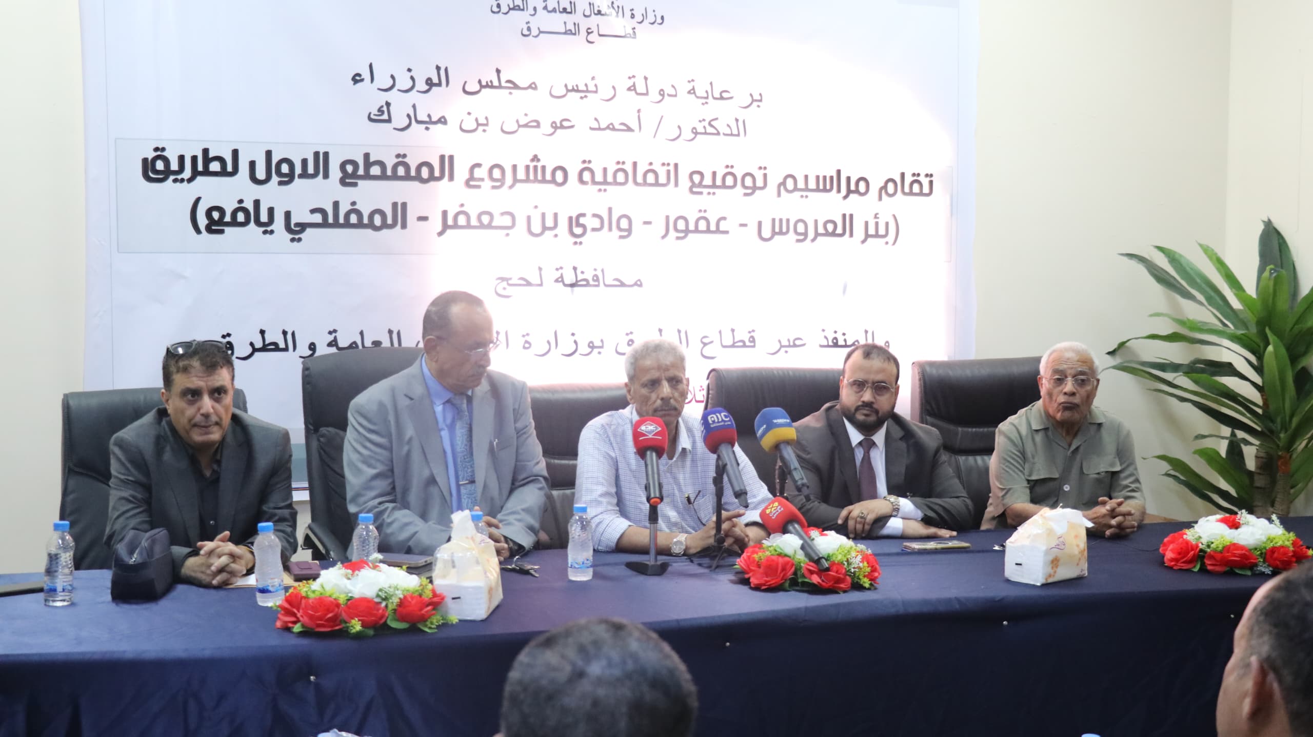 وتأتي هذه الاتفاقية برعاية دولة رئيس مجلس الوزراء الدكتور أحمد عوض بن مبارك، وبإشراف وزارة الأشغال العامة والطرق ، ويتضمن المشروع تنفيذ الطريق بطول 7 كيلومترات، بإشراف قطاع الطرق بوزارة الأشغال العامة والطرق ،عبر مؤسسة صالح السقاف للتجارة والمقاولات العامة.