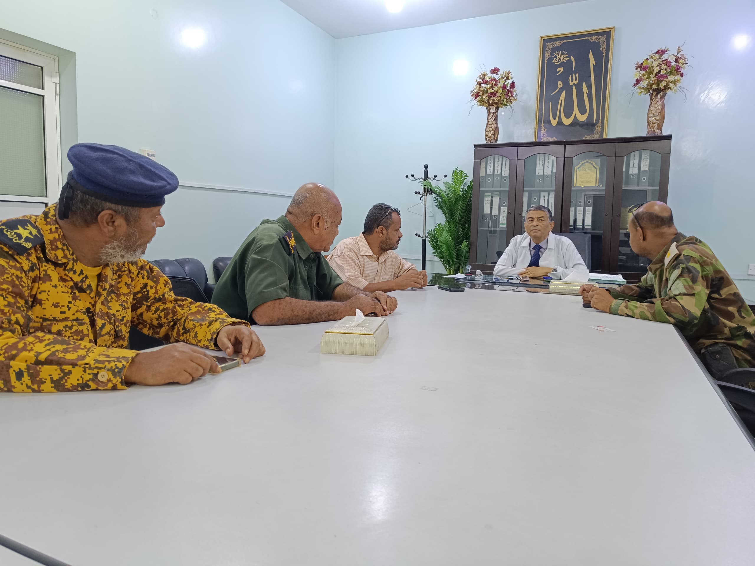 بحث رئيس هيئة مستشفى ابن سينا الدكتور حسين زين الحداد مع مساعد مدير الأمن والشرطة لشؤون الأمن بساحل حضرموت العقيد عبدالله الدقيل جوانب تعزيز أمن حماية المنشأة الطبية.